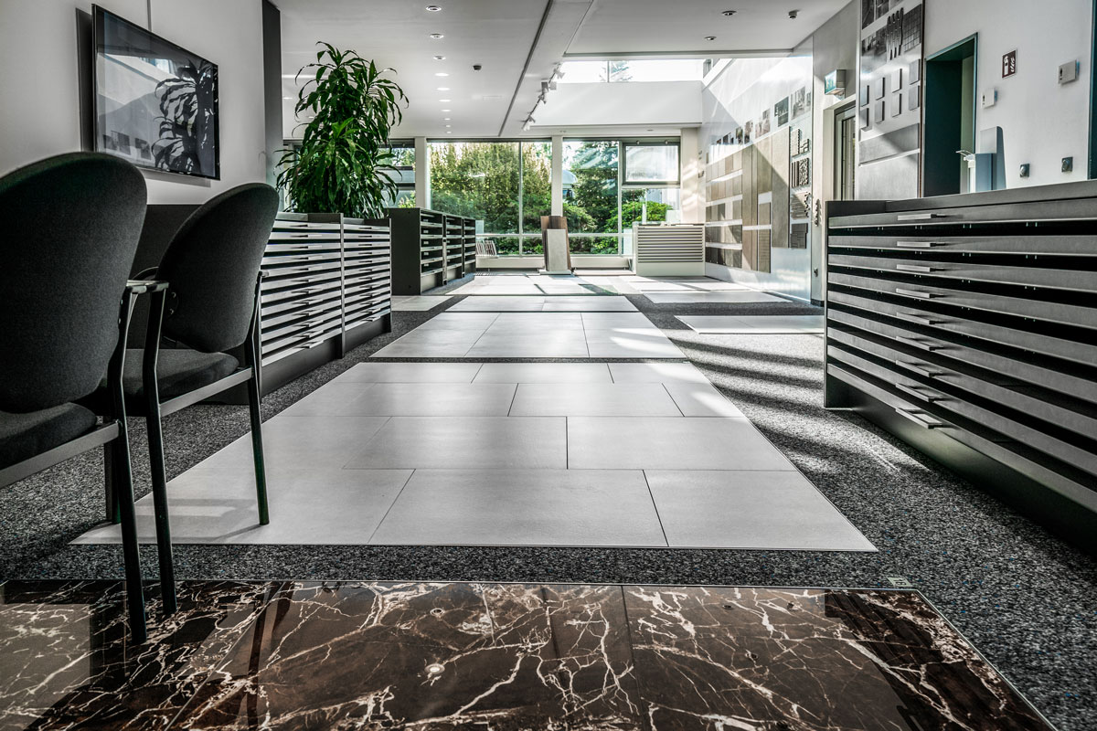 Alle unsere Standorte verfügen über große, hochwertige Ausstellungsräume sowie über professionelle Bereiche für Fliesenleger und Handwerker: Unsere Kundendienstabteilung ist sowohl für den Einzelhandel als auch für die Beziehungen zu den Fliesenlegern zuständig. Die Größe der Ausstellungsräume reicht von 900 Quadratmetern in Hamburg bis 500 Quadratmetern in Schwerin, alle Filialen verfügen über ein eigenes Lager und werden täglich logistisch versorgt. Ein besonderer Service, den wir für Architekten, Planer und Unternehmen geschaffen haben, ist unsere „Design-Werkstatt“ in Hamburg: Das Konzept verbindet eine speziell für Architekten entwickelte Präsentation mit der Unterstützung digitaler Medien und der Möglichkeit der sofortigen Bemusterung.