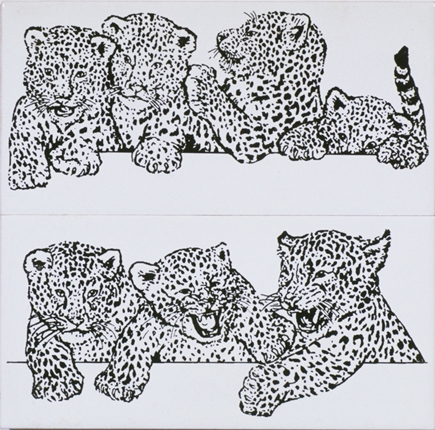 Zwei Dekorationen mit Keramikfliesen von Modedesignern: links Ken Scott für Cedit (1976), rechts Valentino für Ceramiche Piemme (1981)