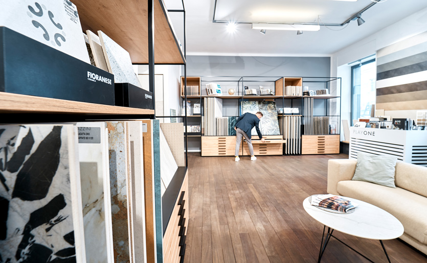 50% unseres Umsatzes erzielen wir mit dem Großhandel von Fliesen und Naturstein. Zu unserem Kundenstamm gehören vor allem Fliesenleger, Steinmetze, aber auch Küchengeschäfte, Designstudios und Architekten. Die zweite Hälfte unseres Umsatzes stammt aus dem Verkauf an Privatkunden, die in Ausstellungsräumen von unseren gut ausgebildeten Fachleuten beraten werden.