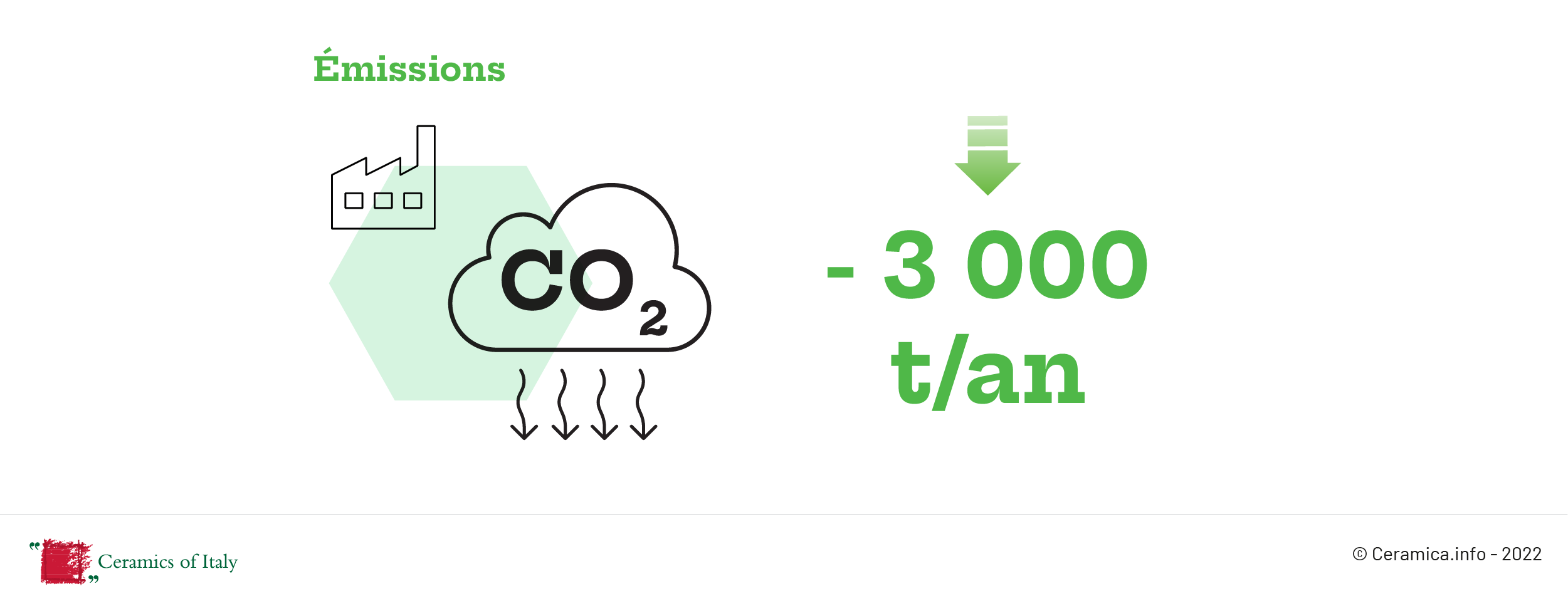 Grâce à la nouvelle configuration technologique, les entreprises ont pu éviter l’émission de plus de 3 000 tonnes de CO2 par an. Un chiffre destiné à augmenter grâce aux nouveaux investissements prévus, soutenus par la capacité de la Céramique italienne à combiner tradition et innovation.
