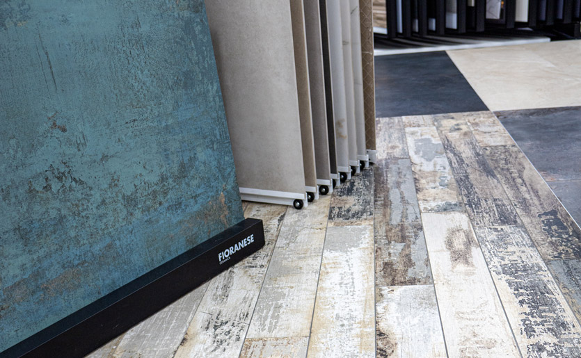 Le carrelage est encore prépondérant dans notre offre. Difficile de s’en émanciper avec notre appellation Lamballe Carrelage et une équipe de passionnés de céramiques. Nous évoluons dans un département rural avec une majorité d’habitats individuels. Les caractéristiques techniques de la céramique en termes de résistance, de facilité d’entretien et de conductibilité sur des planchers chauffants sont autant de facteurs qui favorisent le choix de ce matériau. L’évolution des technologies de productions permet d’obtenir des rendus de plus en plus réalistes et d’inscrire ce matériau dans tous types de projets.