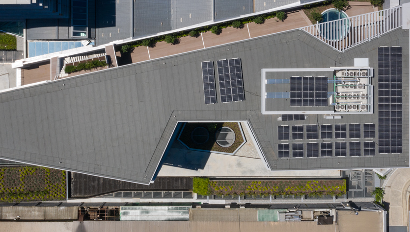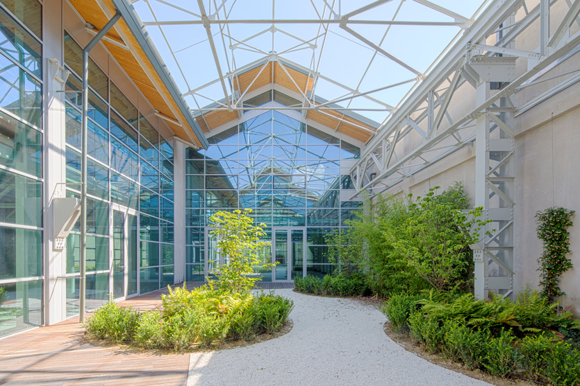 Certamente. Il progetto della Sede AB Medica a Cerro Maggiore (2015) impiega un’impiantistica all’avanguardia, dotata di impianti tecnologici che sfruttano energie rinnovabili, quali la geotermia e il solare fotovoltaico. Il volume, una grande piastra orizzontale, è scolpito alla base da grandi setti inclinati in calcestruzzo a vista, mentre al livello superiore, l’architettura diviene più aerea e luminosa. In questo piano, libero e completamente vetrato, sono distribuiti gli uffici open space dove gli elementi strutturali vengono limitati attorno a patii triangolari e lungo il perimetro irregolare. Il tetto è dotato di forti aggetti con funzioni di schermatura solare ed è caratterizzato dalle bucature triangolari dei patii che garantiscono il comfort di un’illuminazione naturale diffusa su tutto il piano operativo.