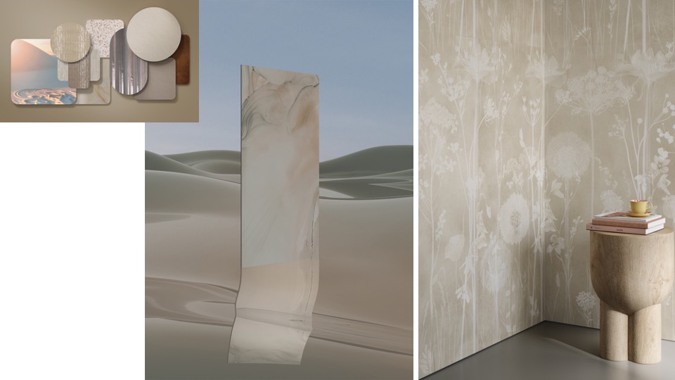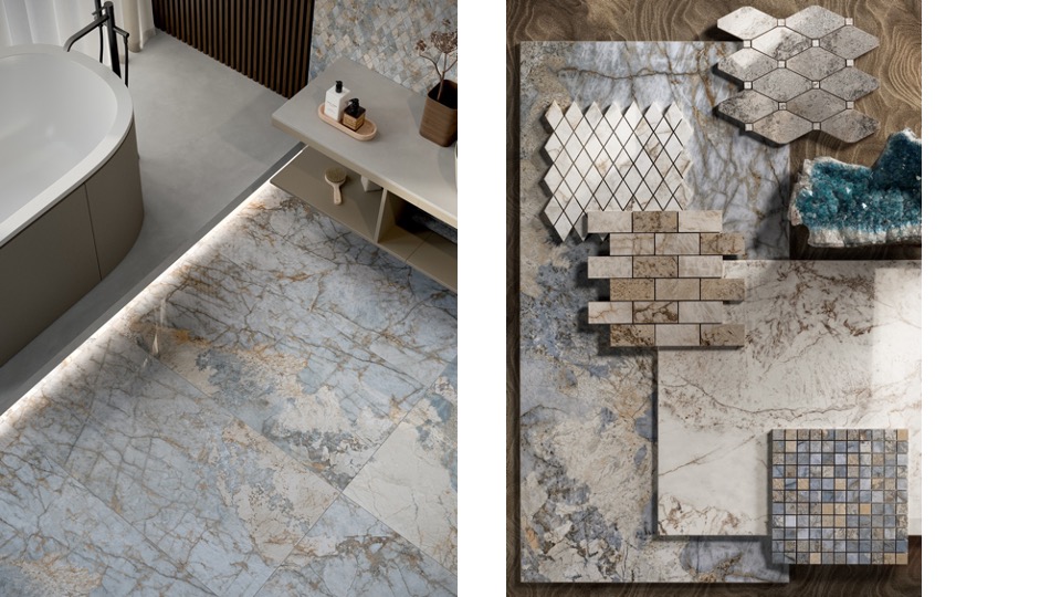 Per nuovi orizzonti applicativi di un futuro prossimo e per generare esperienze sensoriali uniche, l’innovazione ceramica crea nuovi connubi materici che fondono insieme elementi diversi come legno/marmo, cemento/maiolica, onice/marmo, stucco/resina, roccia/quarzite.