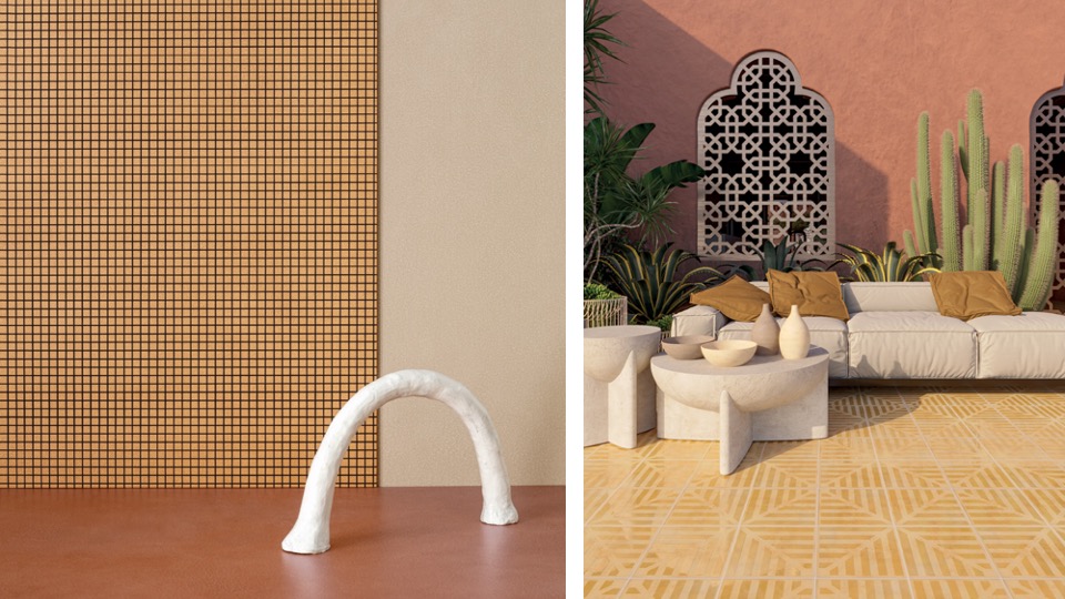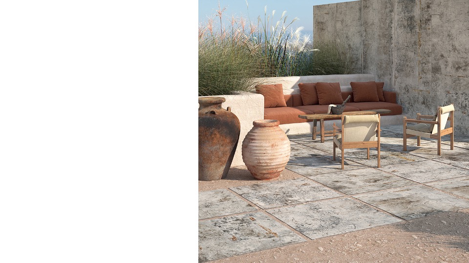 Grande ritorno dei materiali della tradizione come ad esempio la terra cruda, le tavelle, il cotto, con altissime capacità prestazionali. La ceramica enfatizza la materia ancestrale, ricca di dettagli, stonalizzazioni e finiture oltre i bordi, e, grazie alla nuova tecnologia, rende la superfice morbida al tatto, ma al tempo stesso con un elevato coefficiente di attrito e quindi perfetto per l’outdoor.