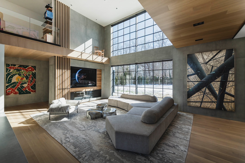 Situata nel suntuoso paesaggio di Old Westbury, a New York, la Hidden Pond House reinterpreta la classica struttura di un fienile attraverso un’ottica moderna. Progettata da Mojo Stumer Associates, l’abitazione è una fusione di materiali grezzi (legno grigio lavato, cemento e acciaio a vista) ed elementi architettonici raffinati. Un materiale che caratterizza l’intera abitazione è la linea Matrice di CEDIT, ovvero una lastra ceramica di grande formato utilizzata sia all’esterno che all’interno. Sulla facciata e sul prospetto posteriore il rivestimento in ceramica contrasta con le doghe in legno scuro, creando un ritmo visivo deciso, mentre i tetti a forma triangolare e le finestre catturano la luce e incorniciano il verde circostante. All’interno, la stessa collezione Matrice di CEDIT figura su una scenografica parete d’ingresso a doppia altezza, sulle pareti dei corridoi, sulle scale e sopra il camino, dove la loro capacità di riflettere la luce e amplificare la profondità spaziale attira con forza lo sguardo verso l’alto. La presenza costante della ceramica, anche in punti come gli ingressi delle camere da letto e accanto alla collezione d’arte dei proprietari, unifica la palette degli interni, rafforzando al contempo il legame continuo della casa con l’esterno.
