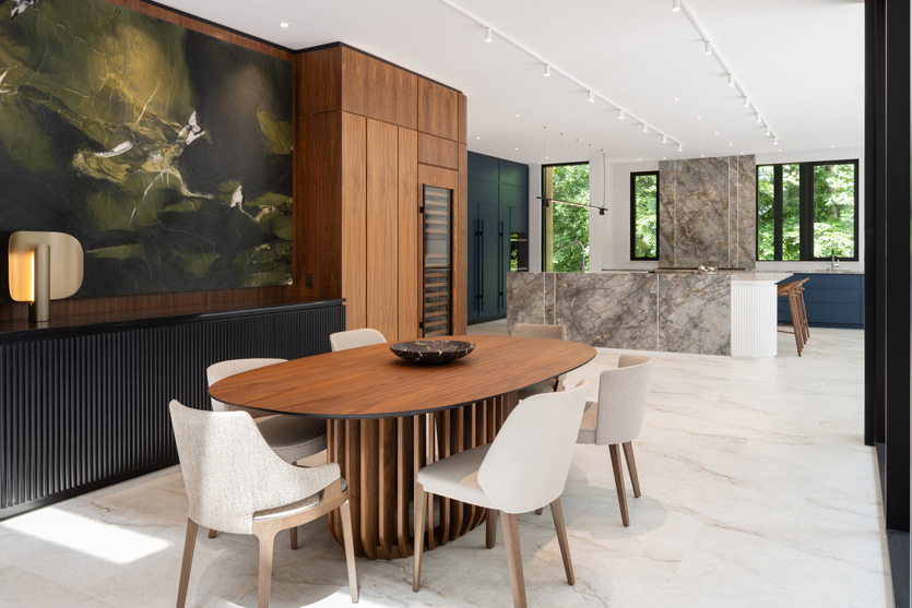 Situata sul lungomare di Fort Lauderdale, questa residenza di 12.300 metri quadrati di DKOR Interiors è stata progettata per abbracciare l’ambiente tropicale che la circonda attraverso materiali dalle tonalità rilassanti e una fluida apertura degli spazi. Realizzata in collaborazione con STRANG Architecture e Bomar Builders, la casa a due piani bilancia il calore dello stile industrial con la semplicità moderna, abbinando linee architettoniche pulite a finiture naturali. All’esterno, una caratteristica distintiva del design è l’uso altamente innovativo del gres porcellanato effetto legno di Emilceramica, che viene applicato su alette verticali e sui soffitti. Con l’obiettivo di trovare un’alternativa al legno naturale che sia durevole, di facile manutenzione e resistente alle intemperie il materiale scelto riproduce il calore e la texture del legno, mantenendo elevate prestazioni in un clima costiero umido e ricco di salsedine come quello della Florida. In tutto l’ambiente, la palette cromatica è radicata nel paesaggio circostante, arricchita da un design fluido che rafforza la continuità tra spazi interni ed esterni. Il risultato è una casa che crea connessione, agio e conferisce un profondo senso di rifugio.