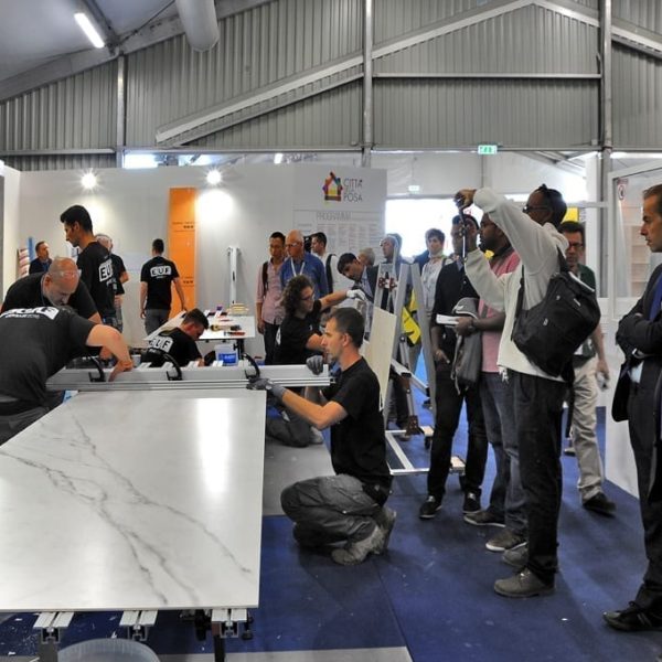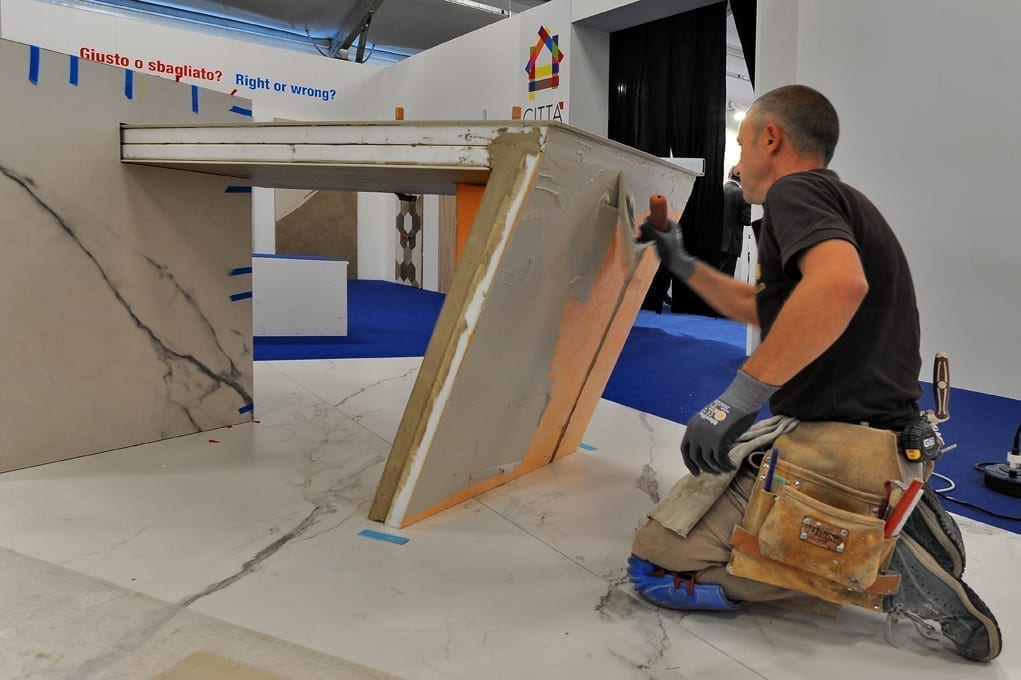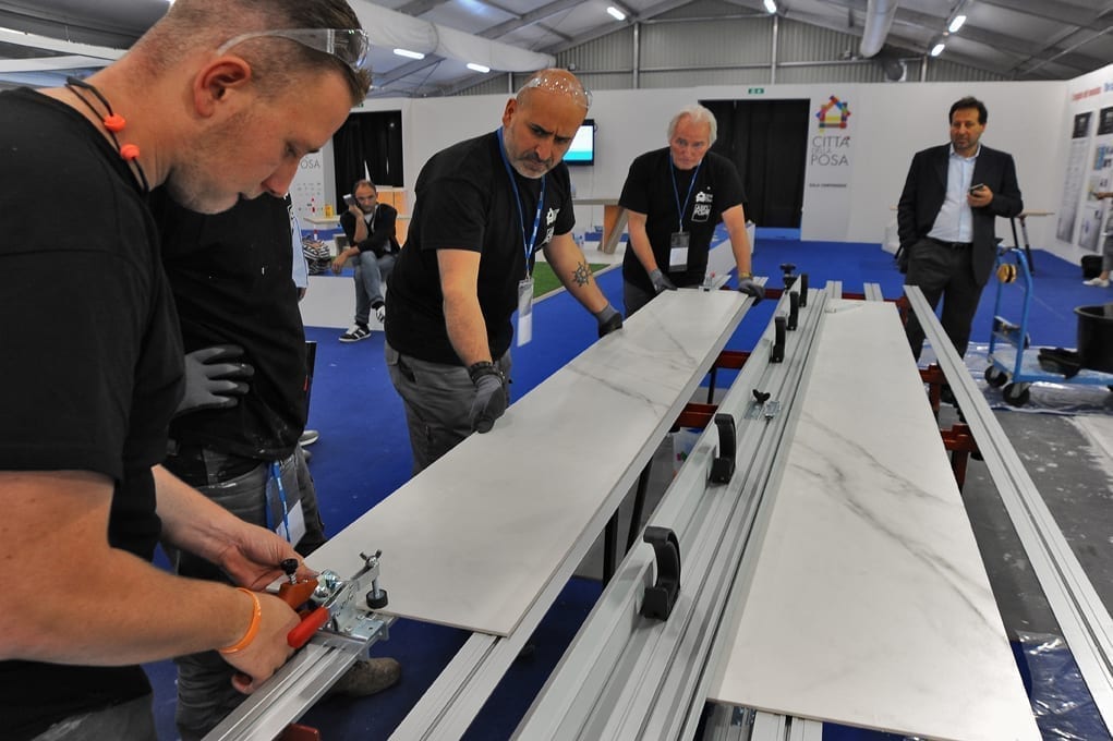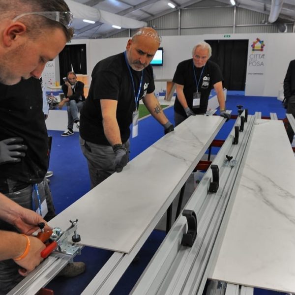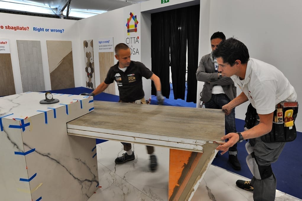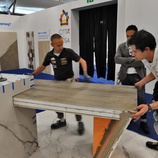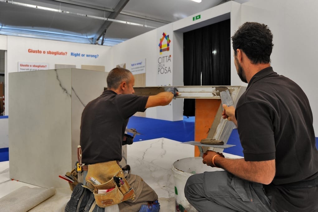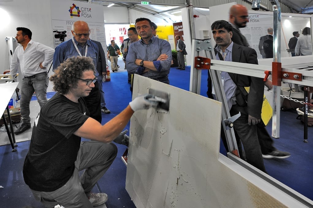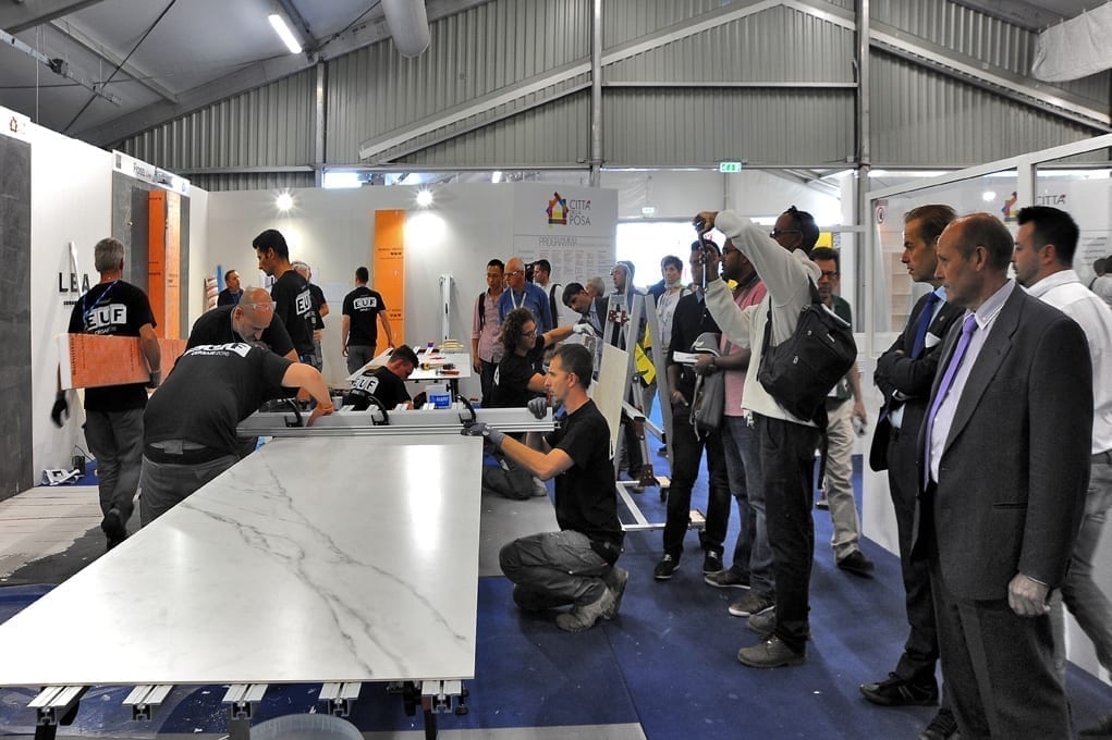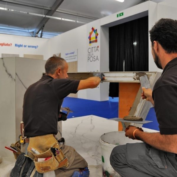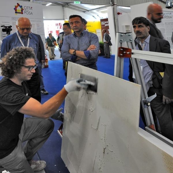 Per la sua 6° edizione, la Città della Posa riserva ai propri visitatori cinque piazzole work-in-progress dove si svolgono altrettante dimostrazioni di posa dedicate ai temi classici della professione (planarità, preparazione del supporto, ambiente bagno, “letto pieno” – cioè perfetta distribuzione dell’adesivo sul retro della piastrella e sul supporto -, rivestimento in facciata e pavimento galleggiante), a cui si aggiunge un’altra piazzola dedicata all’installazione delle grandi lastre. In quest’ultima è in programma il seminario tecnico di aggiornamento professionale per progettisti, architetti, ingegneri, geometri Grandi lastre. Progettazione, manutenzione e posa, che si svolge da lunedì 25 a giovedì 28 dalle ore 13.30 alle 17.30 e venerdì 29 dalle ore 10.00 alle 14.00. Ai partecipanti, impegnati in due ore d’aula e due ore di esercitazioni pratiche in laboratorio di posa, vengono riconosciuti 4 crediti formativi professionali.