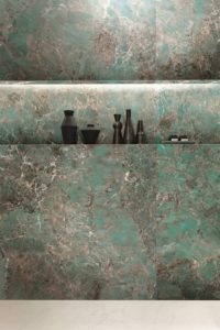 Il marmo ceramico – un classico intramontabile dei trend ceramici più in voga – continua la sua indagine estetica, alla ricerca di eleganza ed armonia nelle grandi lastre per arredare spazi infiniti. Sorprende per il realismo grafico e per l’attenzione al dettaglio delle sue tonalità, venature, inclusioni fossili, cristalli scomposti. Le finiture di superficie sono a specchio e garantiscono la massima pulibilità e resistenza, oltre ad esaltare ogni minimo dettaglio della materia tipiche delle diverse tipologie marmoree (dal classico statuario, al marmo arabescato, dal marmo di breccia al marmo nero) e, nei casi più sofisticati, si trasformano in pietre preziose come geodi, onici, alabastri ed agate.