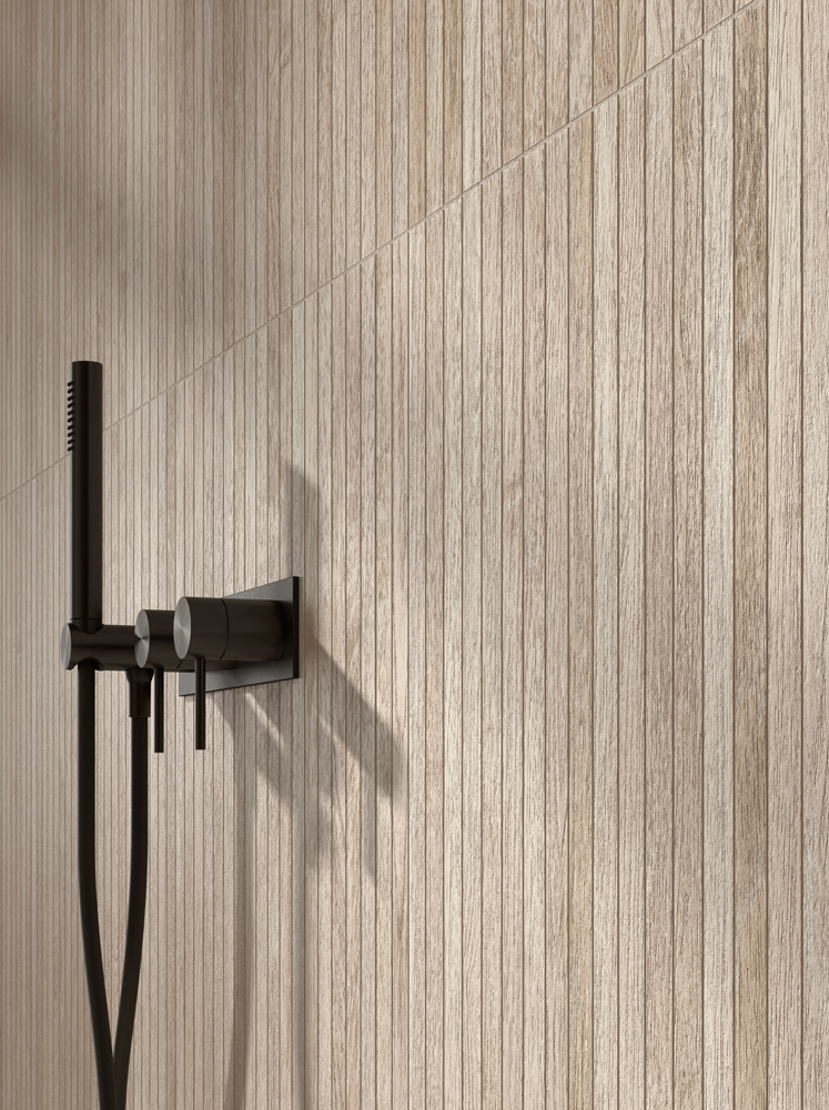 Ci sono, infatti, piastrelle con grane in rilievo, come fossero granelli di sabbia, oppure con finiture ‘millerighe’, regolari e geometriche. Altri esempi riguardano varianti in 3D, per superfici caratterizzate da volumi geometrici delicati ma netti, o che si ispirano ai materiali naturali non solo nei colori e nei decori ma anche nelle texture: si possono sentire i nodi delle varie essenze in legno, la granulosità del calcestruzzo o le superfici irregolari di pietra e marmo.