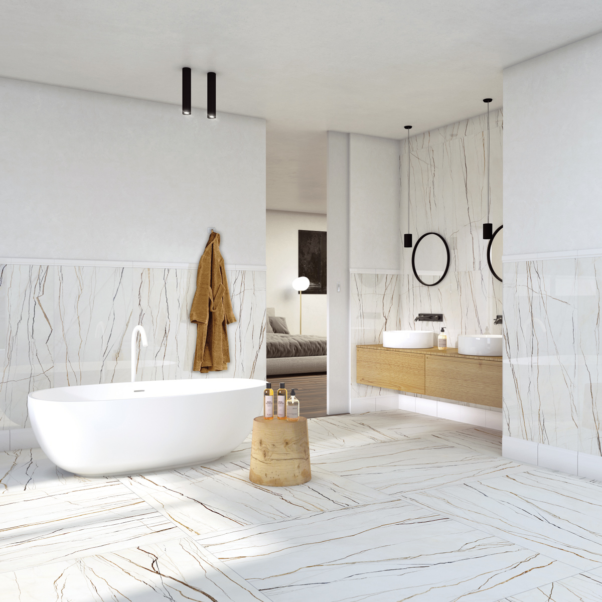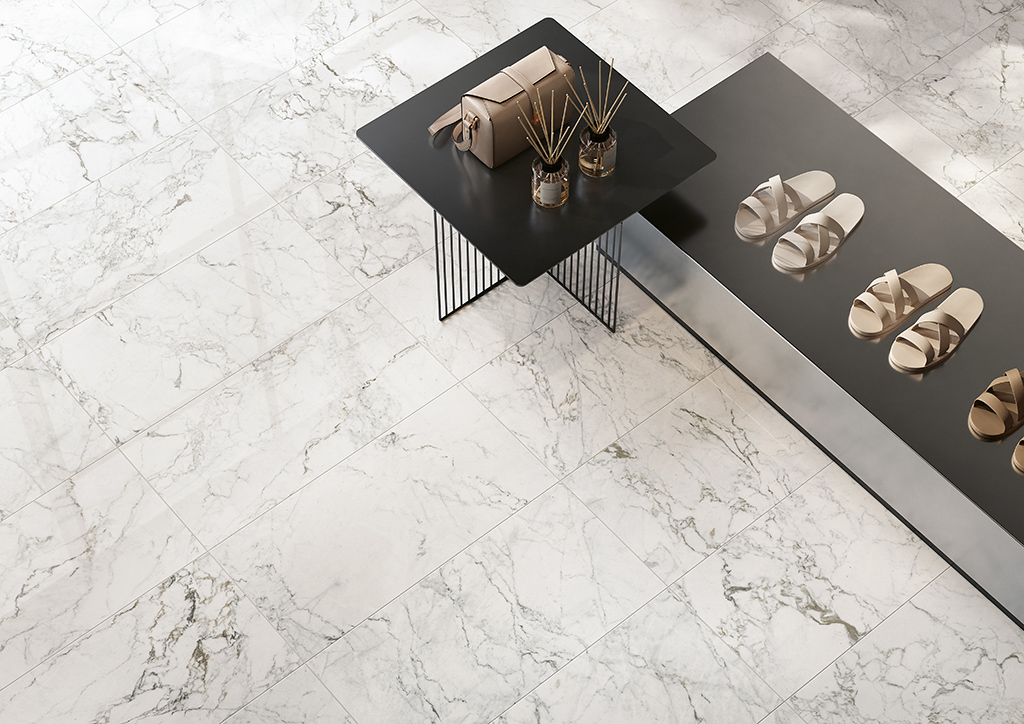 Dopo un anno e mezzo di sobrietà, il desiderio è quello di farsi notare tra la massa. E cosa di meglio dell’eleganza classica del marmo ceramico?