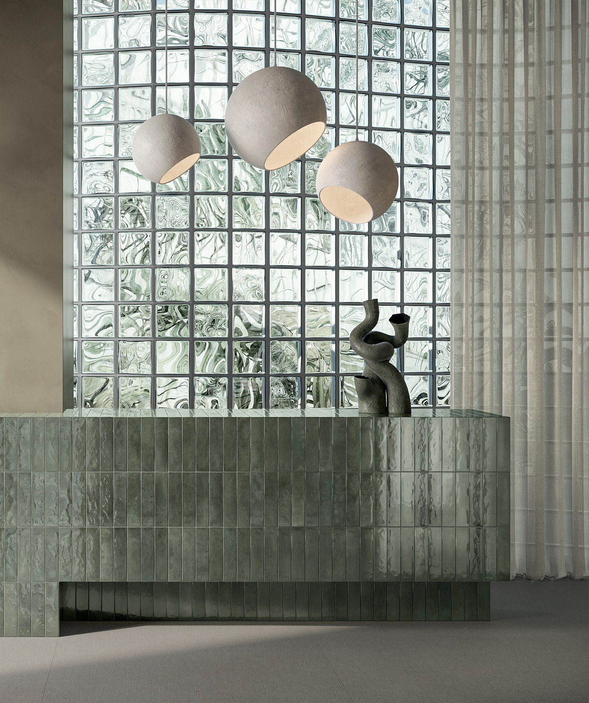Nella vasta gamma di offerte della ceramica italiana, i formati si ridimensionano: dal mosaico, ai listelli, ai piccoli pezzi, per meglio rivestire anche le superfici curve.