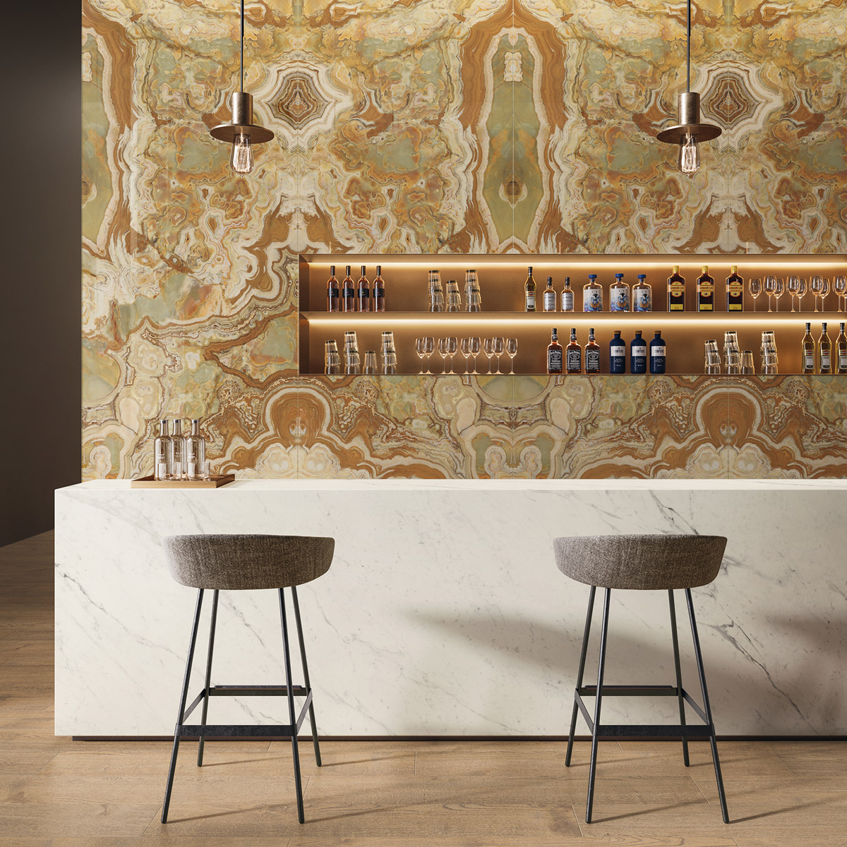 Dal prodotto, al progetto: il marmo ceramico è naturale e antiscivolo allo stesso tempo, può essere applicato in interni e all’esterno, in aree asciutte ma anche umide. Perfetto per spazi residenziali di pregio, in ambito contract, hospitality, hotellerie, così come per ambienti di lusso come spa, yacht, navi da crociera. Un grande ritorno della pietra ceramica come materiale di tendenza, tornata di forte appeal nei progetti di interior: la vasta offerta annovera i piccoli ciottoli, le intrusioni calcaree, le texture materiche e minerali, i rilievi, gli ossidi, con impronte vegetali derivate dalle varie fasi di sedimentazione; i pattern sono molecolari e micro granigliati.
