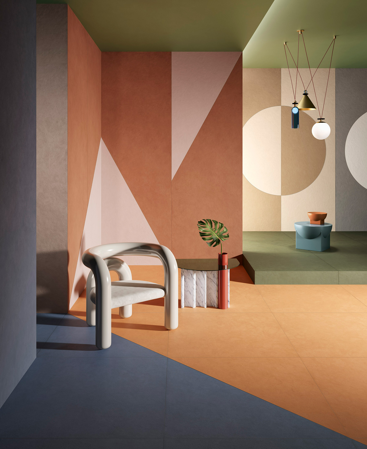 La piastrella non vuole replicare altri materiali, ma è il colore stesso (il pigmento) che diviene materia, dando il senso di artigianalità e tattilità, ricreata però da un materiale industriale.