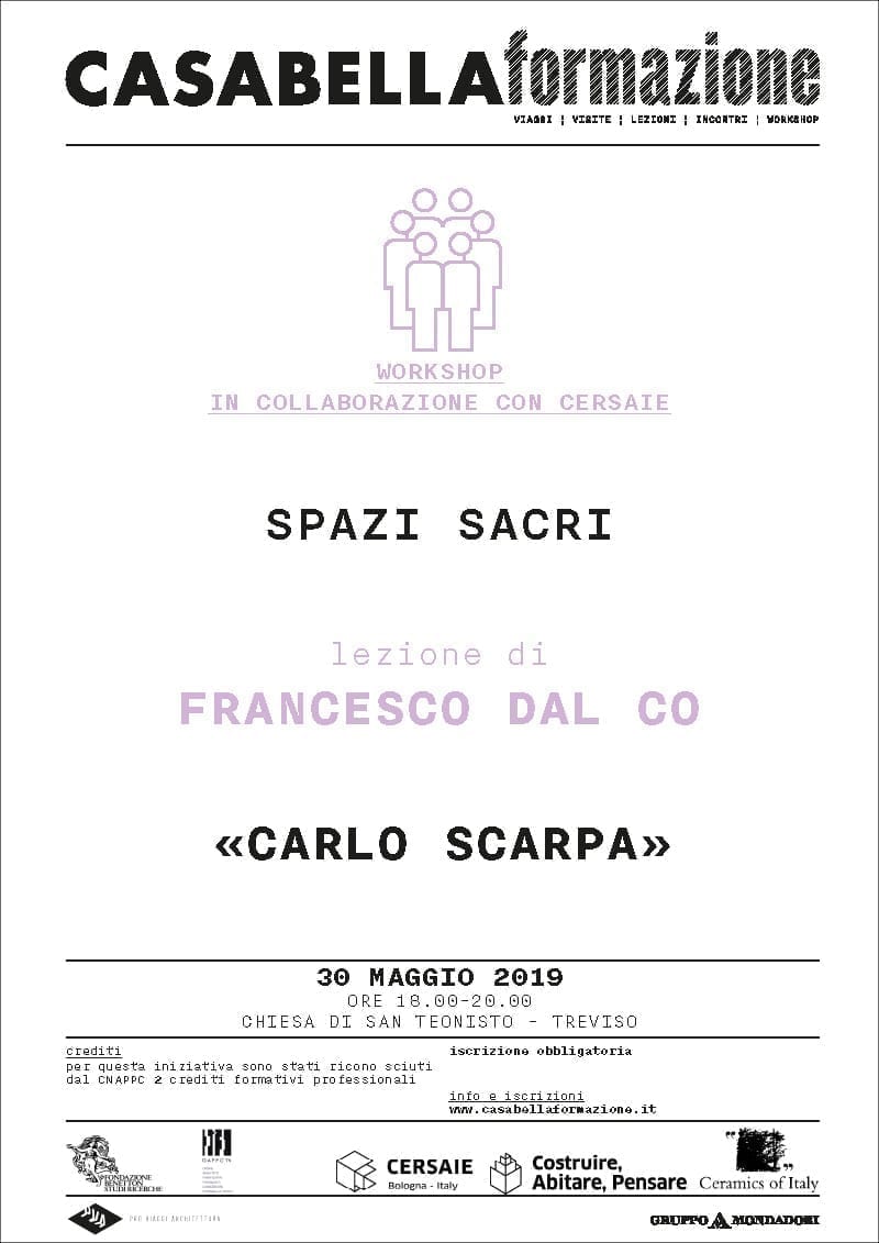 Primo appuntamento giovedì 30 maggio 2019 alle ore 18:00 alla Chiesa di San Teonisto di Treviso (Via San Nicolò, 31). Protagonista di questo incontro è il Professor Francesco Dal Co, che racconterà il lavoro di Carlo Scarpa, uno dei più importanti architetti del XX secolo, premio Olivetti e Medaglia d’Oro ai Benemeriti della Cultura e dell’Arte e membro degli Honorary Royal Designers for Industry, dell’Accademia Olimpica di Vicenza e dell’Accademia Nazionale di San Luca.