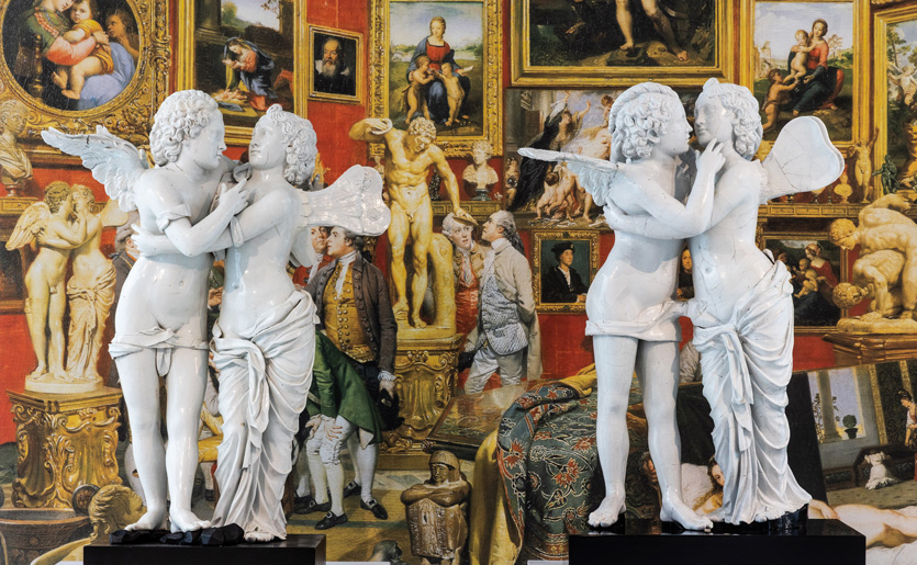 A sinistra: Gaspero Bruschi e Manifattura Ginori, Amore e Psiche, porcellana dal marmo antico nella Tribuna della Galleria degli Uffizi, 1748 circa, Sesto Fiorentino, Museo Ginori. A destra: Manifattura Ginori, Amore e Psiche, porcellana dal marmo antico nella Tribuna della Galleria degli Uffizi, 1750 ca., MIC Faenza.