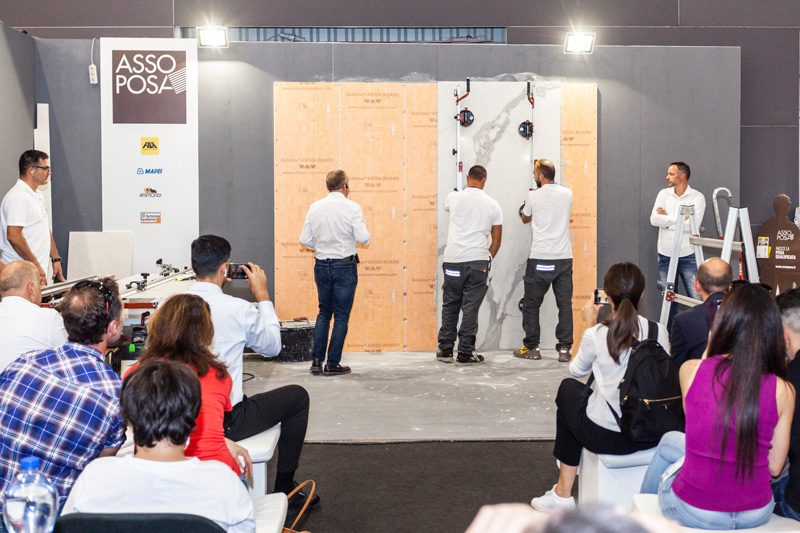 Uno spazio importante all’interno della ‘Città della Posa’ è occupato da Assoposa (Associazione nazionale imprese di posa e installatori di piastrellature ceramiche), che ogni giorno dialoga con gli operatori del mondo della posa e funge da Info Point per i visitatori, oltre a promuovere la Certificazione del Posatore Piastrellista secondo la Norma 11493-2 in collaborazione con Certi.S.