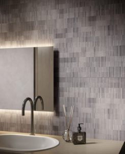 02. È firmata dallo studio londinese Benoy la collezione di piastrelle in gres porcellanato Glitch di Ceramiche Piemme. Il senso della collezione va proprio estratto dal nome: glitch è lo sfarfallio che si produce sullo schermo a causa di un errore non prevedibile e il desiderio era appunto quello di ricreare in forma materica gli errori del digitale.