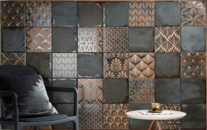 04. I colori e i pattern grafici della serie Materic (cm 20×20), di Elios Ceramica, reinventano la consistenza dei rivestimenti effetto cotto ricreando sulla superficie le imprevedibili discontinuità cromatiche tipiche della lavorazione artigianale.