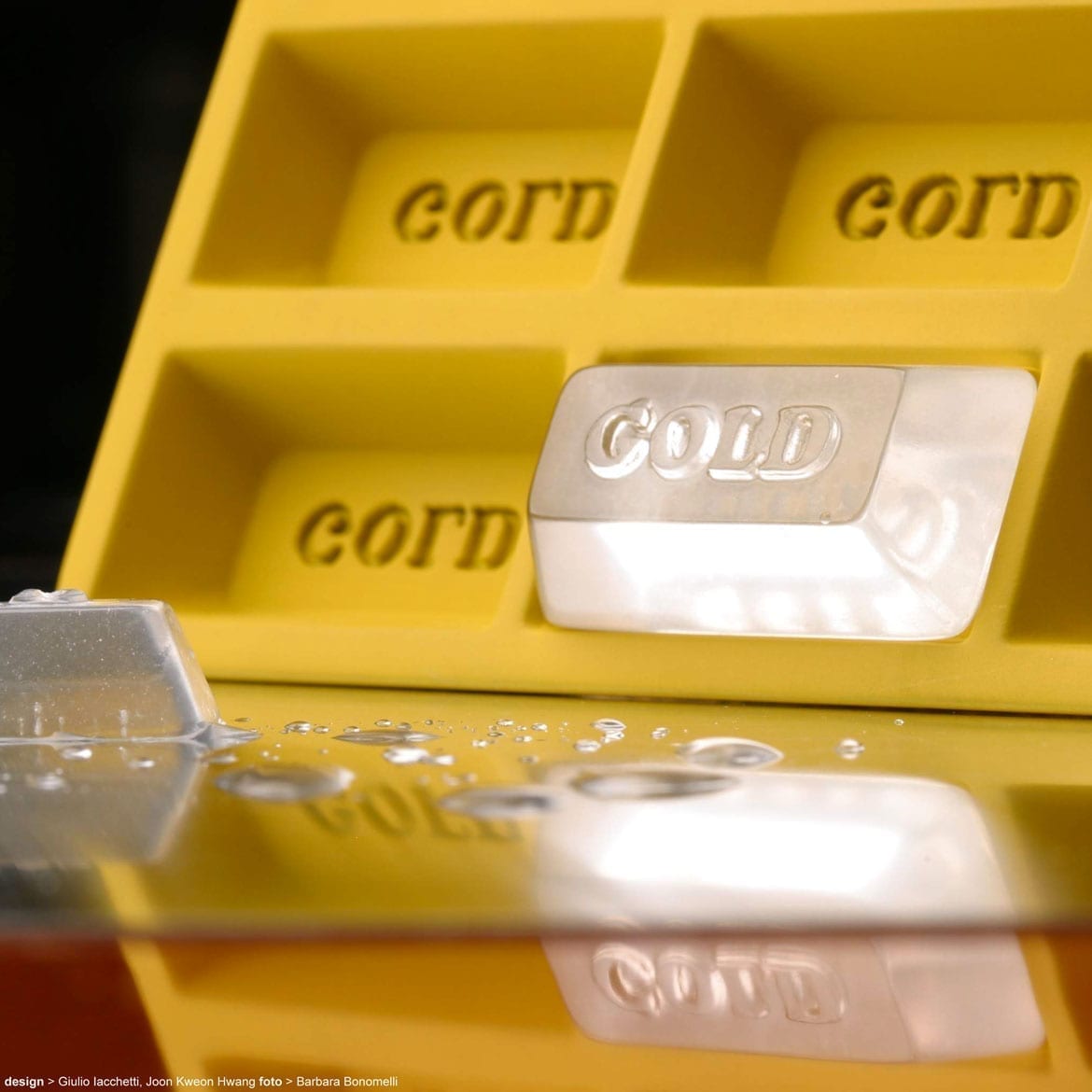 Lingotto, dunque, da semplice contenitore formaghiaccio in gomma siliconica si è trasformato in strumento per pensare?Con il Lingotto suggerisco una riflessione sul valore dell’acqua, senza voler fare il moralizzatore. Il Lingotto non ti obbliga a usare meno acqua, si limita a produrre dei volumi di ghiaccio a forma di lingotto, al posto dei classici cubetti. Ogni lingotto riporta sulla superficie minore in rilievo la scritta GOLD e la parola gold rimanda all’acqua come un bene prezioso da non sprecare.