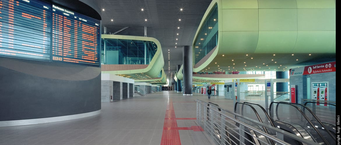 Una caratteristica comune di tutti i punti di transito è rappresentata dall’intenso flusso di passeggeri e ad esso può far fronte soltanto un materiale dotato di elevata robustezza e resistente ai carichi costanti e all’usura, come la ceramica. Il grès porcellanato, sottoposto a pressatura e cottura, e poco poroso, presenta proprietà meccaniche superiori rispetto alla pietra naturale, anche in termini di resistenza agli urti. Si contraddistingue per l’indubbia resistenza non solo rispetto agli elevati carichi pedonali, ma anche ai pesanti effetti esercitati dalle attrezzature di pulizia e dai bagagli. L’affidabilità dei prodotti ceramici viene inoltre riconfermata dalla loro capacità di sopportare le vibrazioni, immancabile tratto distintivo di tutte le strutture di trasporto.
