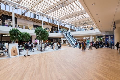 Gli ambienti pubblici ad alta frequenza (sale riunioni, negozi, chiese ecc.), con carrelli e altri mezzi di trasporto (supermercati, centri commerciali, luoghi di transito, stazioni e aeroporti) sono caratterizzati da livelli assai elevati di sollecitazioni meccaniche, soprattutto di superficie. Anche le sollecitazioni chimiche sono elevate, oltre che per il rischio e la frequenza di contatto con sostanze aggressive, anche e soprattutto per le esigenze di pulizia veloce ed efficace, che comportano il ricorso a mezzi particolarmente energici dal punto di vista sia chimico che meccanico.