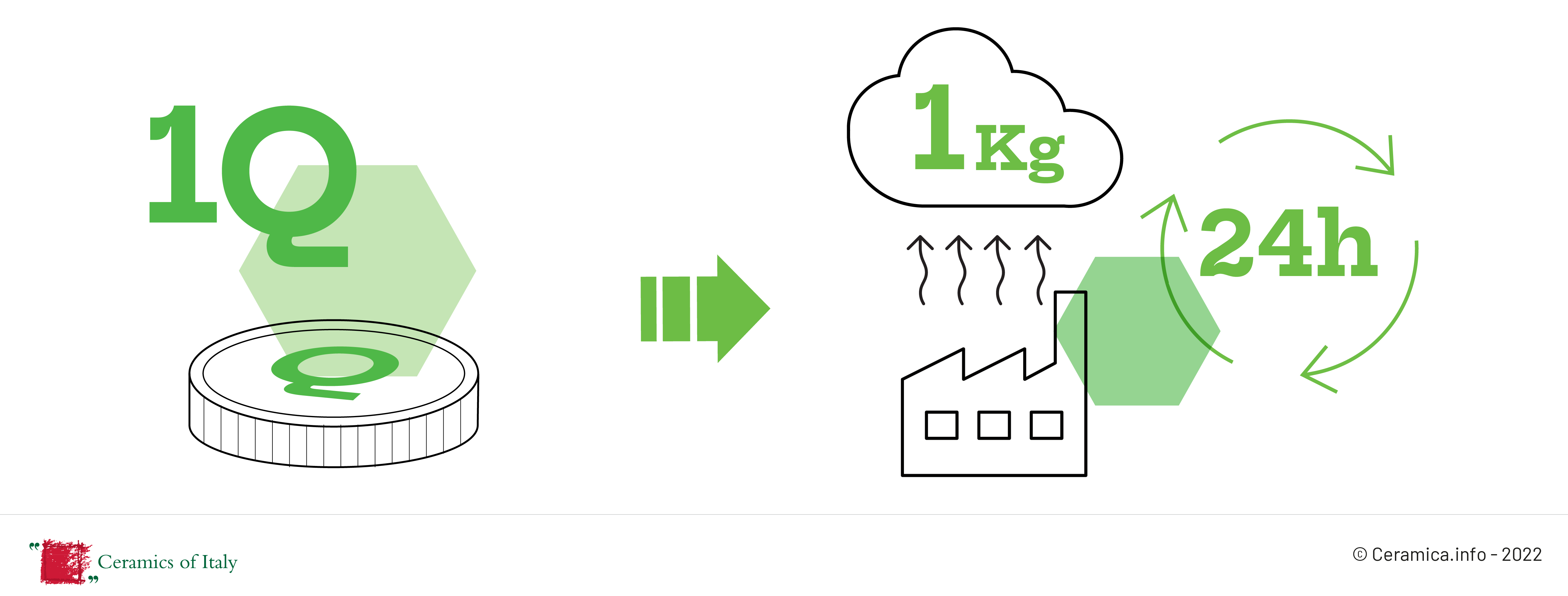 L’indagine effettuata da Arpae sulle emissioni provenienti dal processo industriale della Ceramica Italiana dimostra che eventuali incrementi dei livelli produttivi non provocano aumenti proporzionali delle emissioni1. Ciò è possibile grazie alle iniziative e alle tecnologie introdotte dalle aziende ceramiche italiane: l’Accordo territoriale volontario, l’introduzione degli impianti di cogenerazione e i sistemi di depurazione a caldo di polveri e fumi.