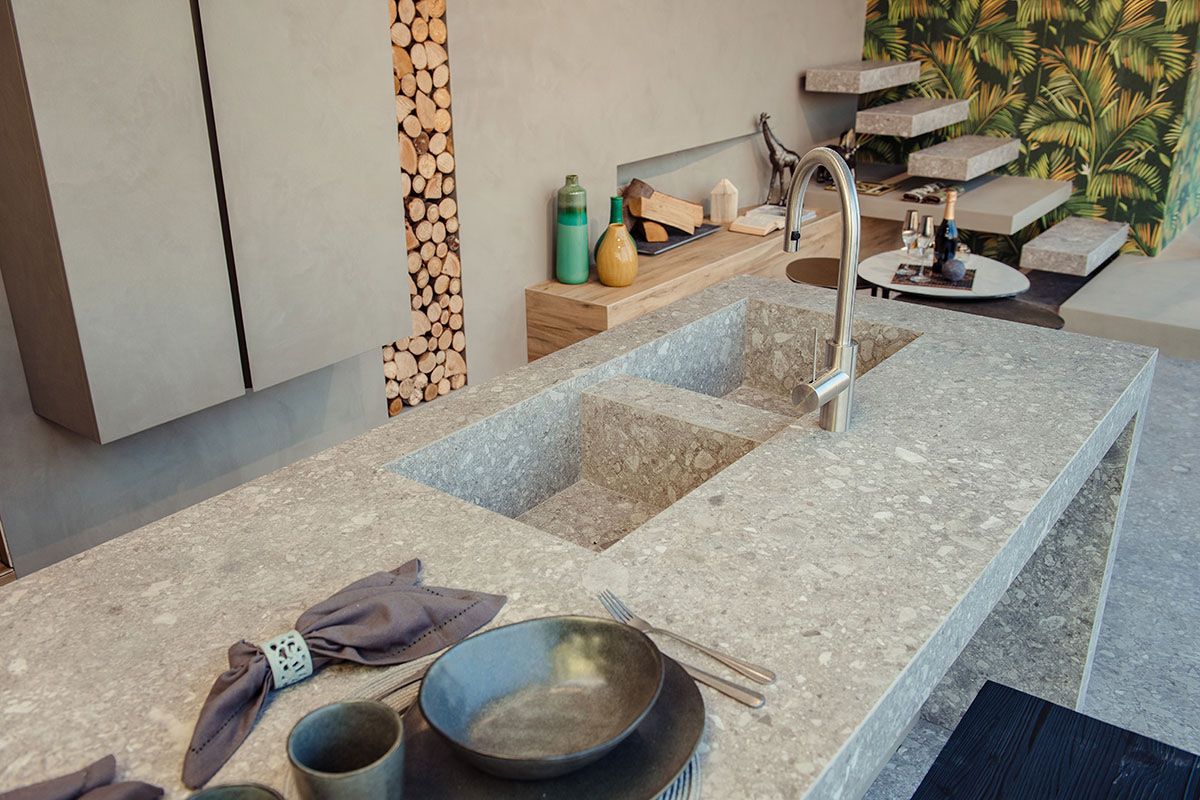 Nel 2023 quello che era un laboratorio di idee diventa un laboratorio fisico, con l’acquisizione di due macchinari per il taglio gres (una fresa a ponte a cinque assi e una waterjet). Grazie ai nuovi macchinari viene implementata la proposta d’arredo, non soltanto gestendo con facilità il fuori misura, ma anche dando vita a nuovi progetti, come il piano a induzione a scomparsa sotto i top in gres per le cucine. Oggi Impronte è sempre più uno spazio in cui le idee prendono forma, dove creatività e tecnica si incontrano per dar vita a progetti unici.