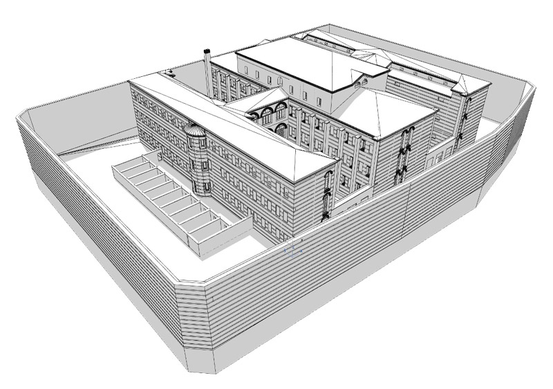 Fig 1. Ex carcere di San Francesco. Render con piastrelle esagonali a pavimento
