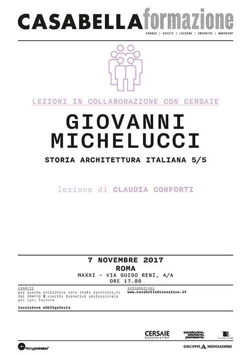 La quinta ed ultima lezione del ciclo “Storia dell’architettura Italiana”, incentrata sul lavoro di Giovanni Michelucci, è in programma martedì 7 novembre, alle ore 17.00 presso il Museo MAXXI di Roma (Via Guido Reni 4/a).