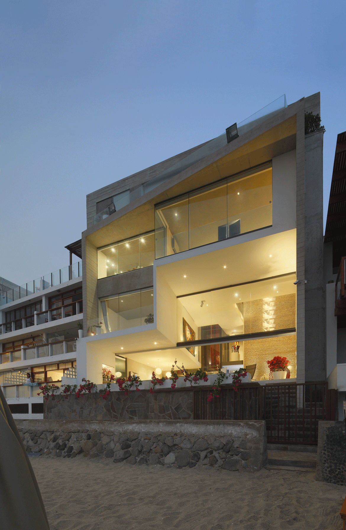 “Siamo stati sempre attratti all’architettura come disciplina ‘multiscalare’, cioè capace di trovare le proprie ragioni aldilà del oggetto architettonico, indagando sulla sua capacità di interagire col paesaggio, la città, le logiche territoriali e il clima. Da quando abbiamo avuto l’occasione di disegnare nel nostro studio a Parigi le nostre prime case in Perù, ci siamo domandati quali sarebbero state le considerazione fondamentali per costruire sulla costa peruviana, costituita da un lungo e stretto deserto delimitato dall’Oceano Pacifico e la cordigliera delle Ande. Essendo un deserto molto particolare, molto arido e contemporaneamente molto umido, con temperature miti, dove non c’è molta radiazione solare e non ci sono venti forti né costanti, abbiamo pensato che queste caratteristiche potevano e dovevano condizionare l’architettura.
