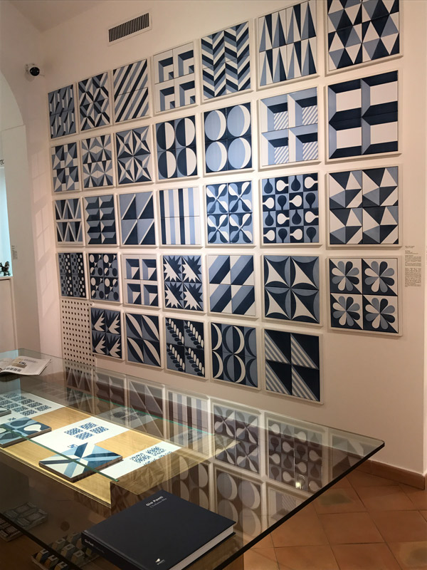 Approdato a Salerno, il maestro milanese s’innamora di tutta la meraviglia del golfo ed è dai colori di quel magico scenario – gli azzurri, i blu, i bianchi – che nascono le celeberrime bicromie disegnate da Ponti nel 1960: trentatré pattern con motivi geometrici, naturalistici e floreali, ciascuno dei quali aventi almeno quattro possibili combinazioni. Lo storico legame intrattenuto con Gio Ponti è fortemente sentito dalla Ceramica Francesco De Maio che, dopo quasi sessant’anni, con estremo rigore, dà vita ad altrettante maioliche: fedeli riproduzioni – per lo più – dei più antichi originali, ma anche realizzazioni di inediti decori del maestro. Allo straordinario lavoro svolto, “fatto con le mani”, simbolo di un’artigianalità moderna, attuale, di cui l’azienda è quotidianamente artefice – è dedicata un’intera parete del Museo della Ceramica Francesco De Maio, e non solo per immortalare le maioliche “Blu Ponti”, una collezione nata senza tempo, ma soprattutto per l’esigenza di esprimere e documentare quanto uno straordinario pezzo di storia del design italiano trovi appartenenza profonda e radicata in quei meravigliosi luoghi a strapiombo sul mare.