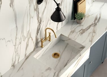 In ambito residenziale trovano impiego le lastre a spessore maggiorato, da 20 mm e oltre, utilizzate per gradini ed elementi di finitura di terrazzi, giardini, percorsi esterni e nel verde, oppure come resistenti piani operativi per banconi cucina. Allo stesso modo, le lastre a spessore ridotto, fino a 3 mm, sono utilizzate come rivestimento di superfici funzionali e di lavoro per tavoli e mobili, ma anche come finitura tecnica ed estetica di porte, pareti e volumi architettonici, senza dimenticare la posa a pavimento negli interventi di ristrutturazione, dove questi materiali rappresentano una soluzione particolarmente interessate ed economica, soprattutto se posati direttamente sull’esistente evitando costose demolizioni. Sempre per il design d’interni sono stati messi a punto prodotti e sistemi modulari caratterizzati da superfici con finiture tridimensionali a rilievo e texture tattilo-materiche che consentono di personalizzare gli ambienti della casa anche semplicemente valorizzandone solo alcuni elementi come una parete, un volume, una rientranza, un pilastro, una colonna, una superficie irregolare, la cornice di una porta, il rivestimento di un camino…