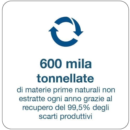 Il 99,5% degli scarti di produzione e depurazione del settore viene riutilizzato all’interno del ciclo produttivo, e permette di coprire l’8,5% del fabbisogno delle materie prime minerali necessarie per il processo di fabbricazione. Sul totale di quanto utilizzato nel complesso della produzione ceramica italiana si possono stimare oltre 600.000 tonnellate di miscele di argille, feldspati e altri materiali che non vengono estratte in natura.