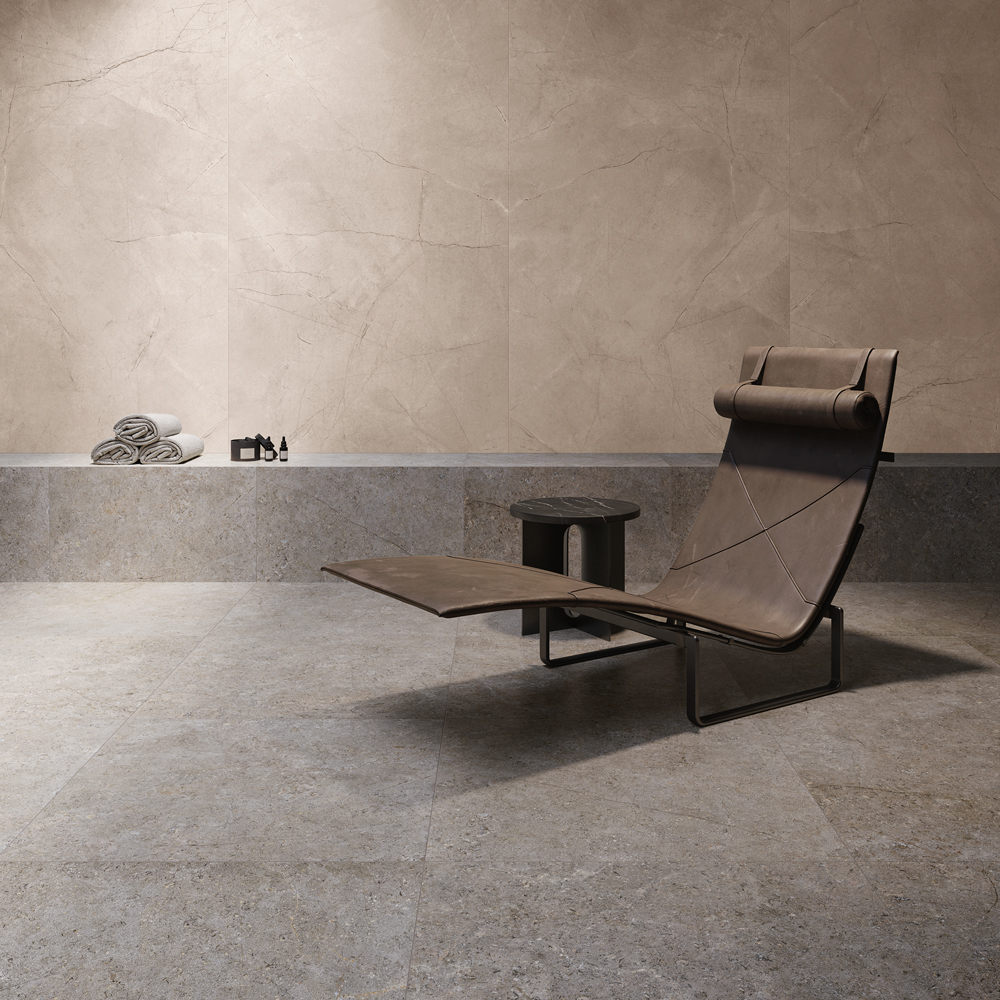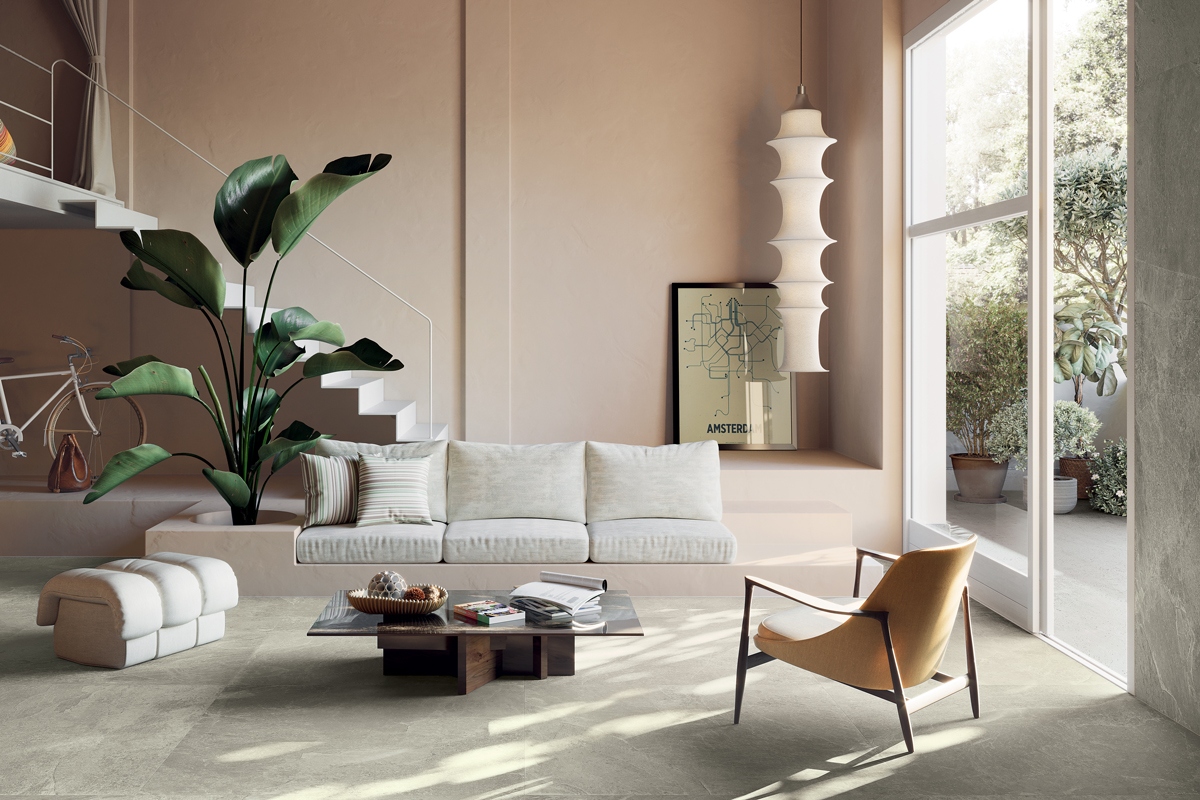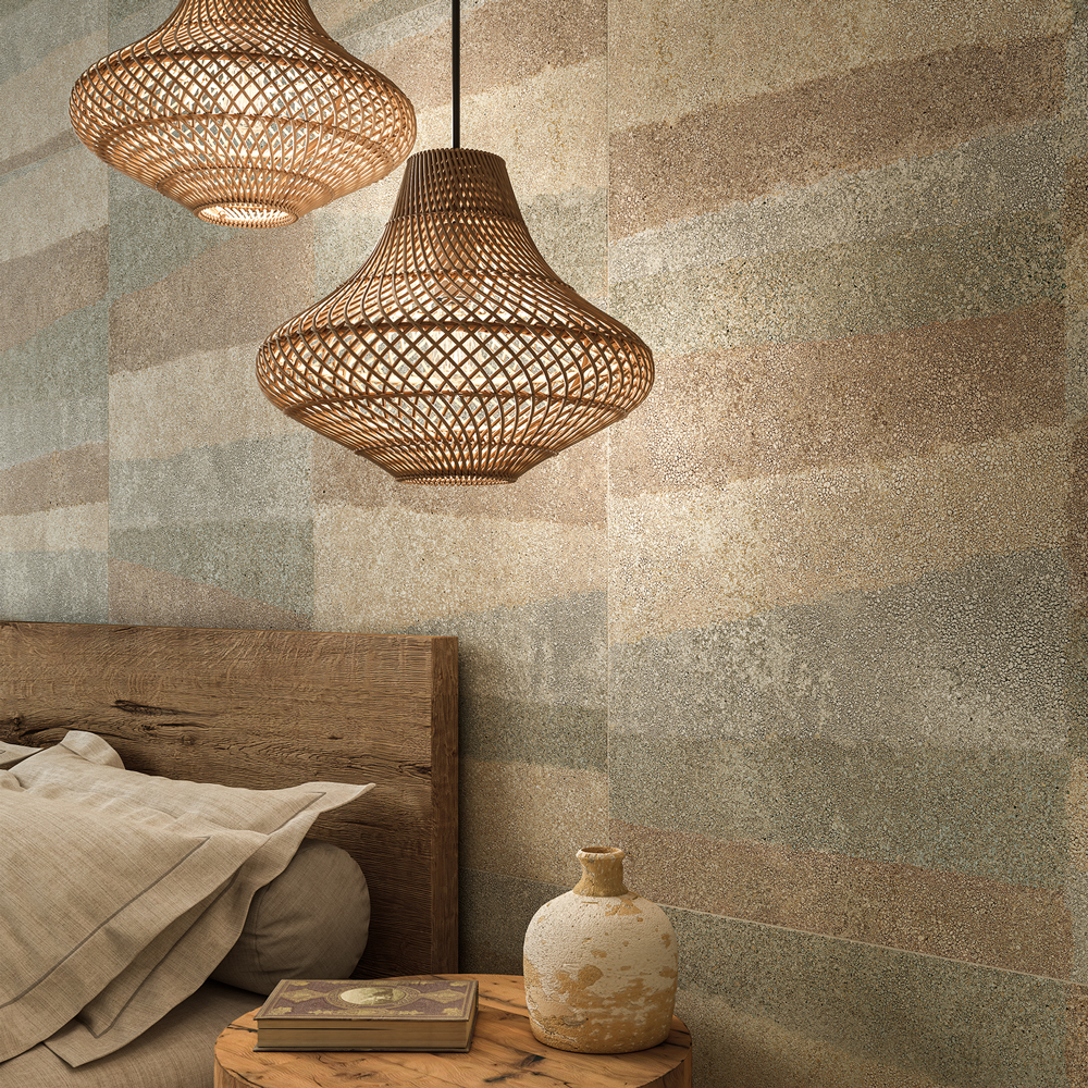 Da un lato, c’è una chiara inclinazione verso la riscoperta dei materiali eterni segno del desiderio di riconnettersi con la terra e la natura. Questa tendenza vede aziende che puntano sull’estetica di materiali come marmi, rocce primordiali, ardesia, limestone, terra, calce e legno con l’obiettivo di creare un’atmosfera autentica e calda, ispirata alla bellezza della natura. Questi materiali vengono spesso riprodotti con precisione grazie a tecnologie di stampa digitale ad alta definizione, che consentono di ottenere dettagli sorprendenti e finiture realistiche.
