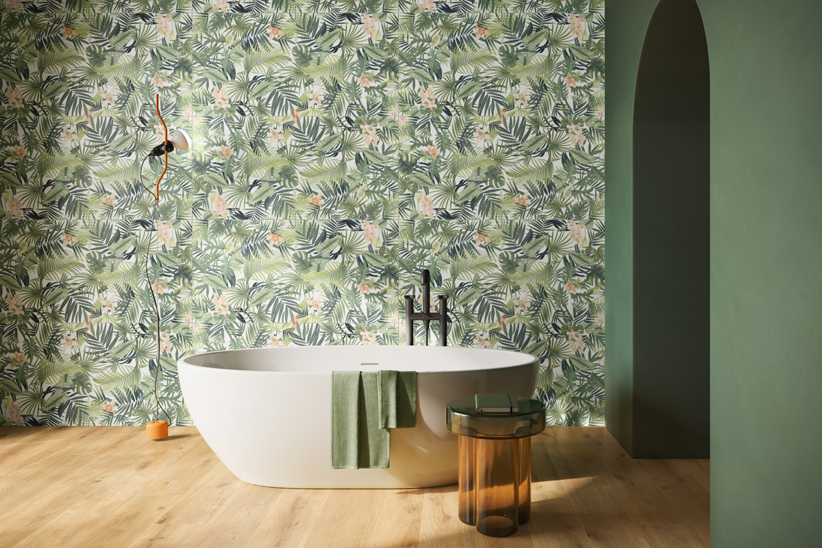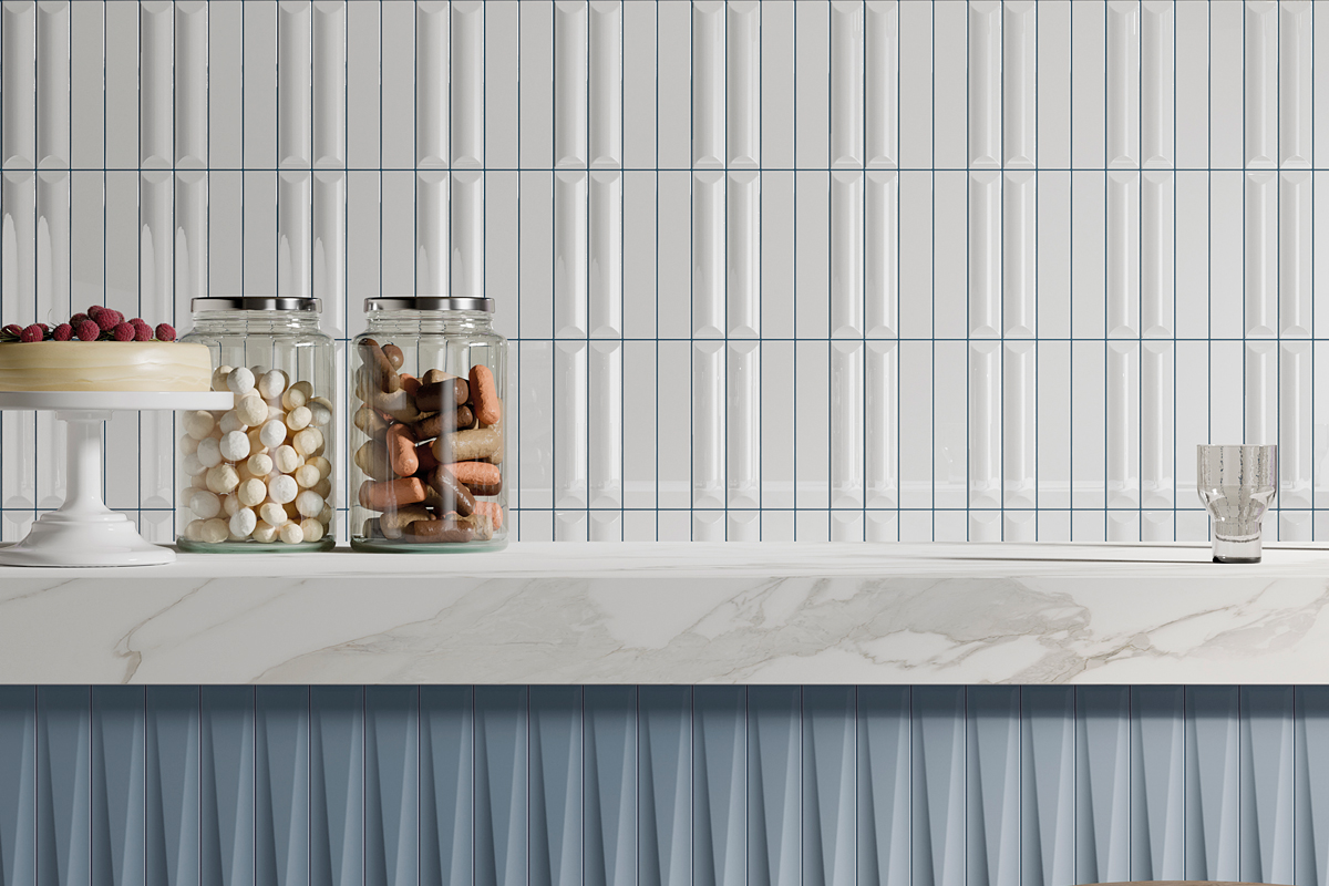 Dall’altro lato, si osserva un’affermazione sempre maggiore di grafiche contemporanee e decorative. Questo stile sperimenta con tecniche digitali avanzate per creare effetti marezzati, conferendo alle ceramiche una sensazione di movimento e dinamicità. L’ispirazione è nei pattern storici che vengono reinterpretati, negli elementi tipici del paesaggio italiano, nelle decorazioni fresche e leggere dinamizzate dal contrasto con vivaci colori di fondo, per superfici in grado di connotare in modo personale gli spazi. Inoltre graficamente forti sono anche le piastrelle tridimensionali che stanno guadagnando sempre più terreno. Queste superfici caratterizzate da motivi e forme rialzate creano effetti di luce e ombra, trasformando le pareti in vere e proprie opere d’arte. L’uso di texture tridimensionali aggiunge infatti profondità agli ambienti, trasmettendo una sensazione di movimento e vitalità creando nuove geometrie e giochi di riflessi.