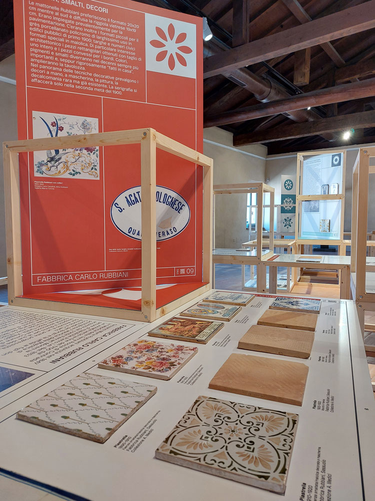 La mostra “Le piastrelle da piccole. 1889-1939: i primi cinquant’anni del Distretto” racconta tutto questo, con approfondimenti sulle storie societarie, sugli imprenditori e i tecnici, sull’evoluzione dei processi produttivi e dei prodotti. Nella selezione in mostra ci sono pezzi rari, sia a struttura geometrica che figurativa, alcuni dei quali di inatteso interesse estetico e artistico puntano ai livelli alti della grafica inizio Novecento e Déco, segnalando l’evoluzione del gusto e del design fino a diventare oggetti d’arte e da museo. Ci sono anche immagini da una campagna fotografica sui rivestimenti con piastrelle di quegli anni tuttora conservati negli immobili storici del territorio.