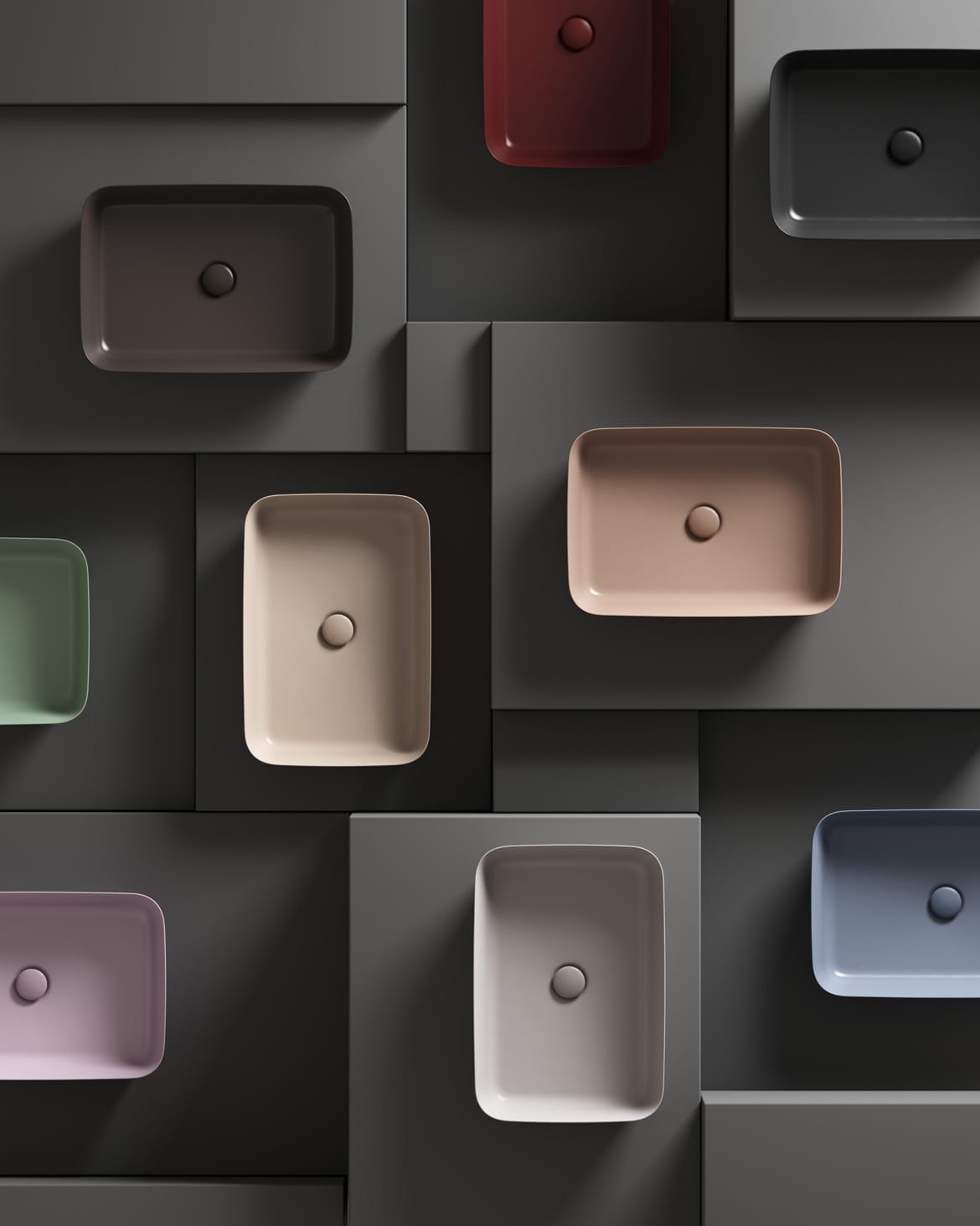Se a quelle di ordine fisiologico, nell’osservare l’applicazione dell’elemento cromatico nello spazio benessere, si vogliono aggiungere altre considerazioni, non vanno dimenticate le contaminazioni di tipo etnico e culturale (i rimandi ad atmosfere vintage, fashion, alla natura e alla sostenibilità). Una caratteristica che accomuna tutte le superfici colorate (dalle ceramiche ai metalli, dal vetro al legno ai solid surface) è la finitura matt, che ne enfatizza la morbidezza tattile. Parlando di come “vivono” il colore gli oggetti più tecnici come lavabi, vasi, vasche, piatti doccia e rubinetti, va sottolineato come proprio la loro connotazione cromatica spesso omogenea al resto dell’ambientazione impedisca sgradevoli stacchi visivi dal contesto d’arredo, creando invece un efficace continuum di tonalità.