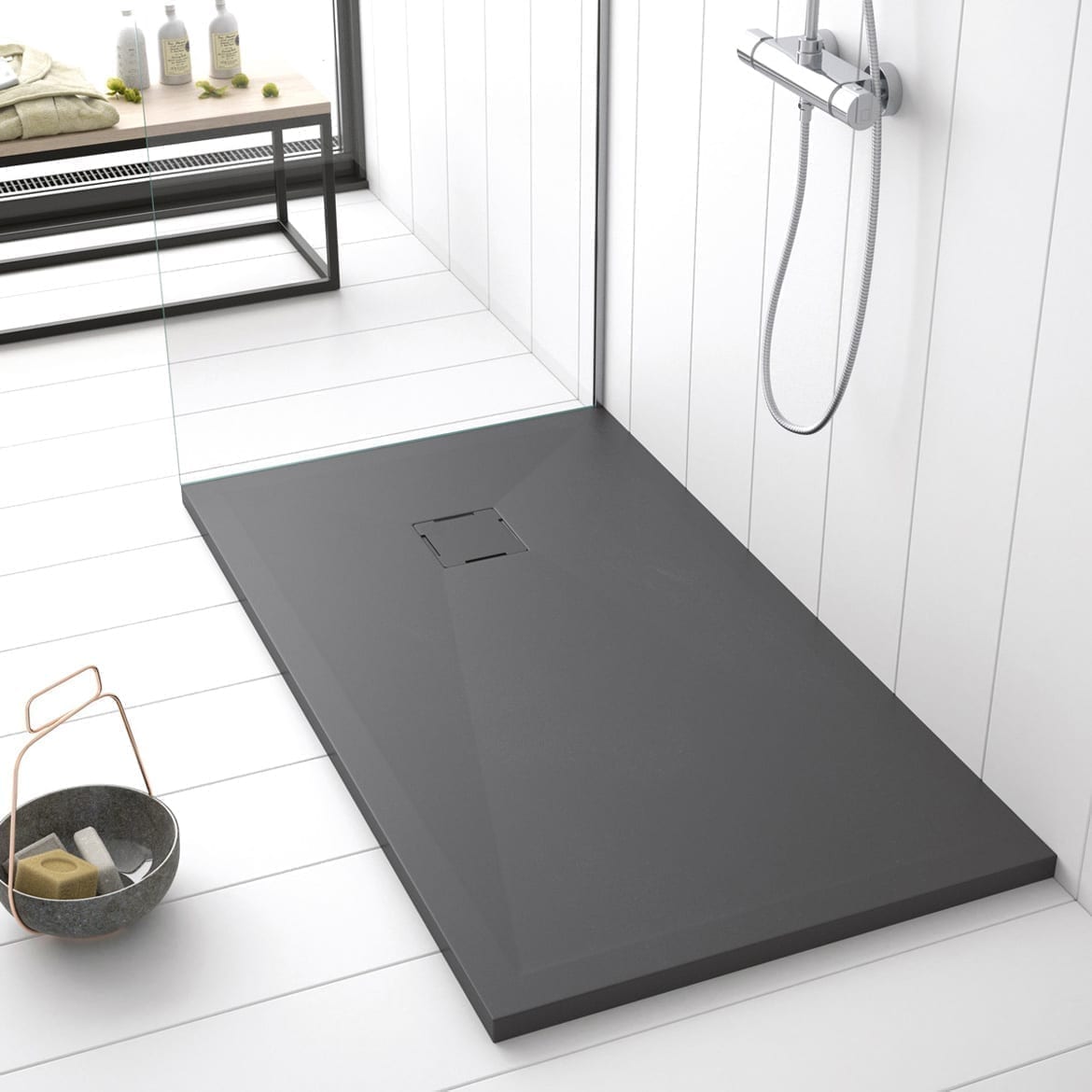 06. I piatti doccia della serie Breccia, di Lacus, sono realizzati in polvere di marmo, carbonato di calcio, quarzo e resina. Con superficie strutturata, antiscivolo e colorata in gel coat, di spessore 3 cm, sono disponibili nei colori bianco e antracite.