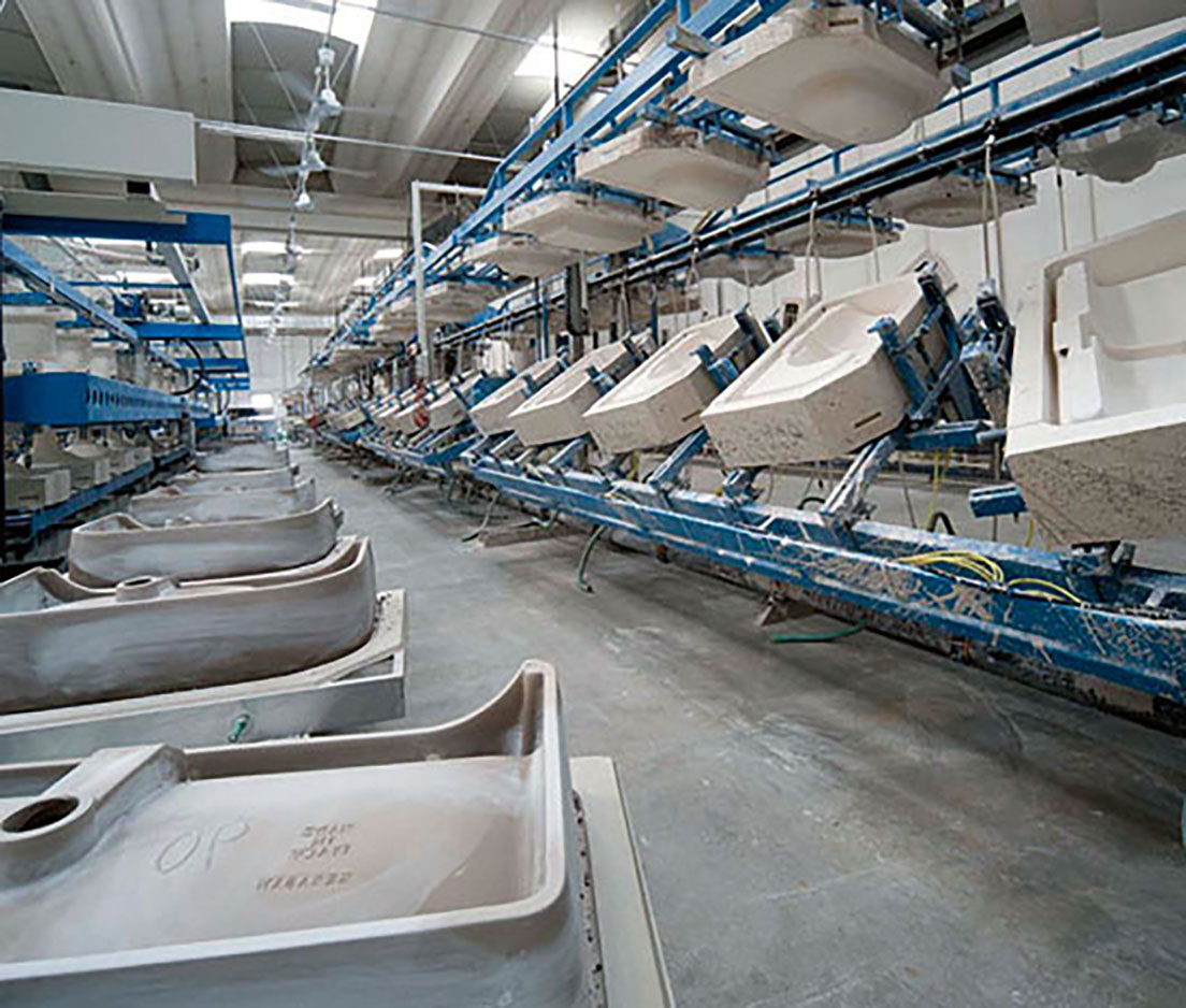 Nello stabilimento in provincia di Viterbo Kerasan produce linee complete di sanitari in vitreous-china e in fire-clay, utilizzando le più avanzate tecnologie unite alla sapienza artigianale dei passaggi manuali e ai più rigidi controlli di qualità. Da sempre l’azienda è attenta alla compatibilità ambientale e alla sicurezza della propria filiera: dai prodotti agli imballaggi, al processo produttivo. Kerasan rispetta le leggi sullo smaltimento dei rifiuti, che confluiscono in discariche specifiche e autorizzate a riceverli, e ricicla le acque sporche da residui di lavorazione che, debitamente filtro-pressate, vengono rimesse nel ciclo produttivo.