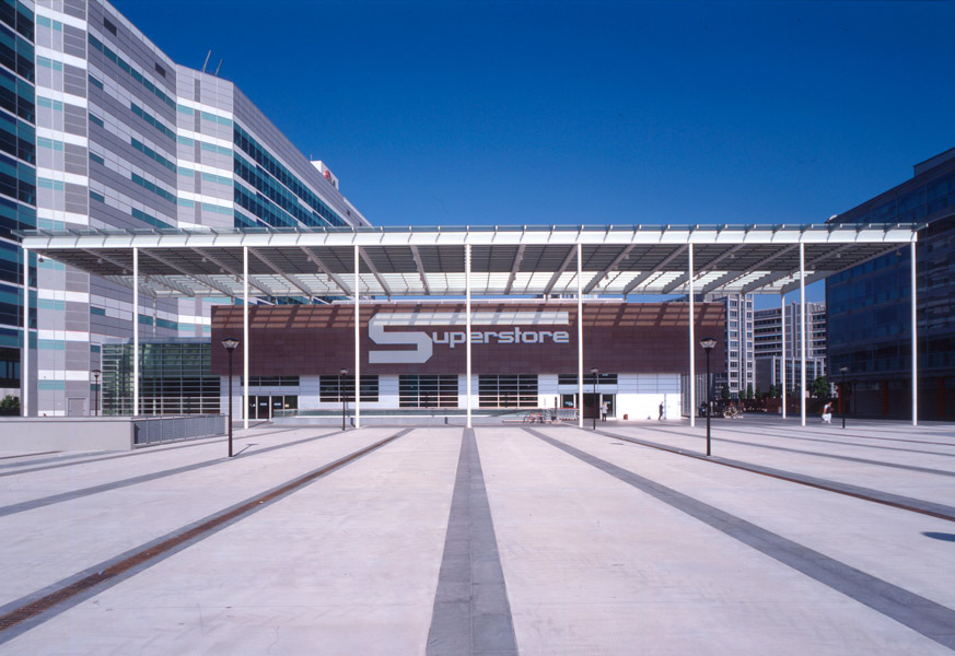 Alles begann 1989 in Alessandria bei Gelegenheit eines Aufwertungsprojekts eines aufgelassenen Industriegebiets von Borsalino. Im Rahmen des Bauprogramms sollte neben Wohnungen und Büros auch ein Supermarkt errichtet werden. Gardella hat dies zum Anlass genommen, um das Bild des „Behälters“ zu aktualisieren, das bisher einer industriellen Verkleidung aus Aluminiumleisten mit einer Fassade mit solidem, ausgesprochen architektonischem Charakter anvertraut war. Er wollte ein unverputztes Mauerwerk darstellen und hat daher ein Muster aus Klinkerfliesen mit versetzten Fugen verwendet, das über den Eingängen von einem Streifen aus Stein aus Luserna zur Trennung der Stockwerke unterbrochen wurde. Dank der Wiederholung dieses Modells mit einfachen, kontrollierten Abänderungen konnte Esselunga in wenigen Jahren ihr Erscheinungsbild im Gebiet erneuern und die Erkennbarkeit der Marke stärken, gleichzeitig aber von Mal zu Mal unterschiedliche architektonische Merkmale einführen, die für bestimmte Kontexte gedacht waren. Die Kraft dieser Planungsstrategie hat ihre Effizienz vor allem in den Vorstädten gezeigt, wo diese Supermarkt-Architekturen sich als Servicezentrum für die jeweiligen Stadtviertel behaupten konnten. Wir sind den von Gardella eingeschlagenen Weg weitergegangen und hatten in den kommenden Jahren mit Fabio Nonis die Gelegenheit, die Grenzen des Projekts zu erweitern und uns nicht nur um das Gebäude zu kümmern, sondern auch die dazugehörigen Bereiche, die Gehbereiche und -wege, die Parkplätze im Freien und die Parkgaragen, die praktisch das Eingangsfoyer zum Gebäude darstellen und in ihrer Gesamtheit die Landschaft bilden, in die es sich einfügt. Effizienz, Barrierefreiheit, leichte Orientierung und visueller Komfort waren die Ziele, die wir verfolgt haben, als wird den funktionellen Hauptkern bereits in den Untergeschoßen mit großen Glaseingangskoffern, von natürlichem Licht beleuchteten mobilen Rampen, Lauben und möblierten Fußgängerzonen, gartenartig gestalteten Grünflächen und Parkplätzen mit Bäumen versehen haben. Im ersten Jahrzehnt des 21. Jahrhunderts haben wir an verschiedenen städtischen Umgestaltungsprojekten gearbeitet, in denen der Supermarkt eine zentrale Rolle in der Aktivierung des Systems der Räume, in denen man in Beziehung tritt, spielte.