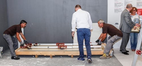 Für die 8. Ausgabe der Stadt der Verlegung stellen Fliesenlegermeister an den fünf Messetagen der Cersaie Verlegemethoden für Großformate vor und stehen allen interessierten Besucher der Cersaie für nützliche Informationen zur Verfügung.