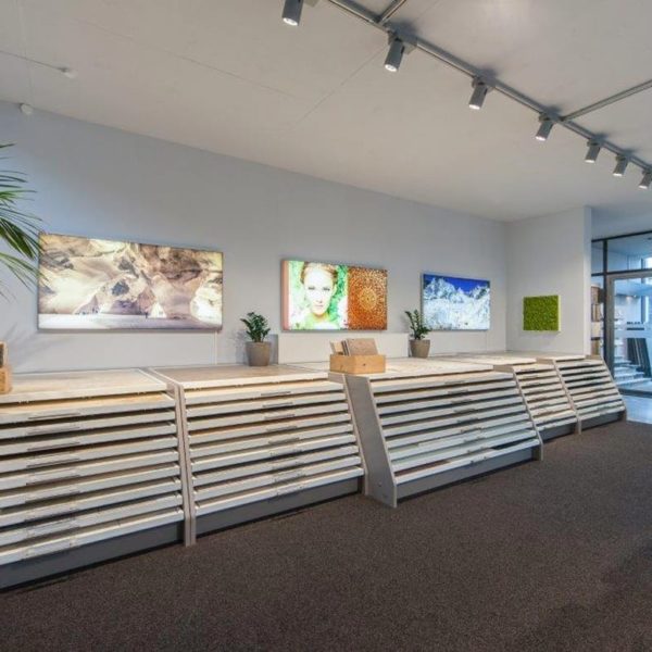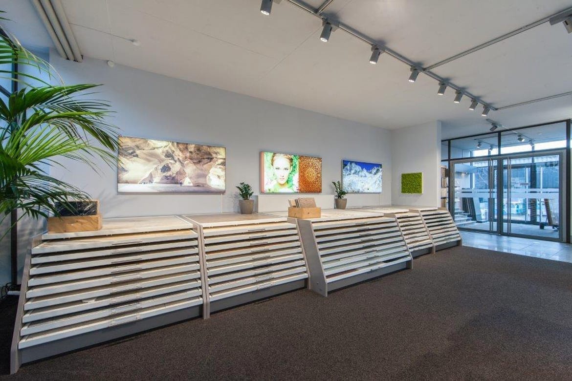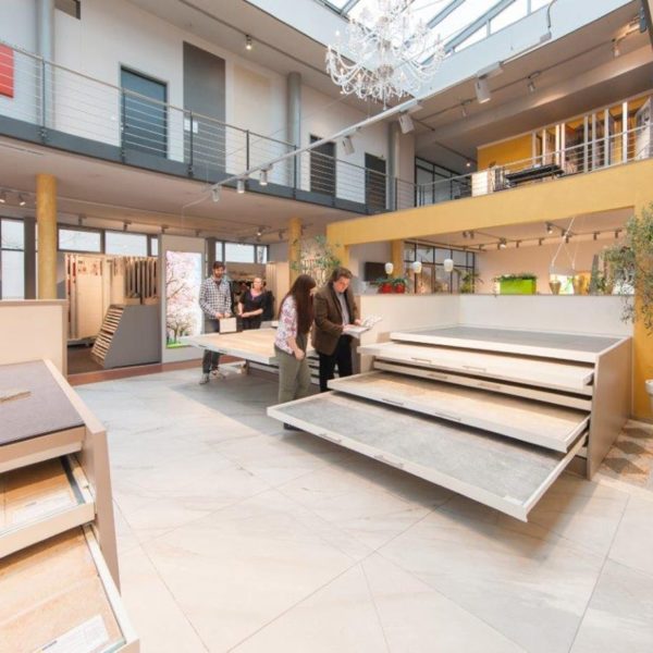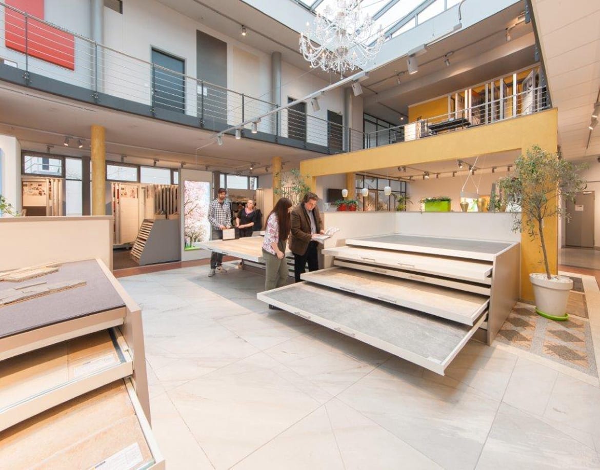 1999 wurde ein moderner Neubau errichtet zu dem auch eine rund 1.000 Quadratmeter große Fläche gehört, die wir ausschließlich für die Ausstellung bestimmten. Die Ausstellung wurde 2015 nach modernsten Gesichtspunkten und mit einem erheblichen finanziellen Aufwand neu gestaltet. Dem Trend großformatiger Fliesen wurde hierbei besonders Rechnung getragen, so dass unser Produktsortiment jetzt auch auf größeren Flächen wirkungsvoll gezeigt werden kann.