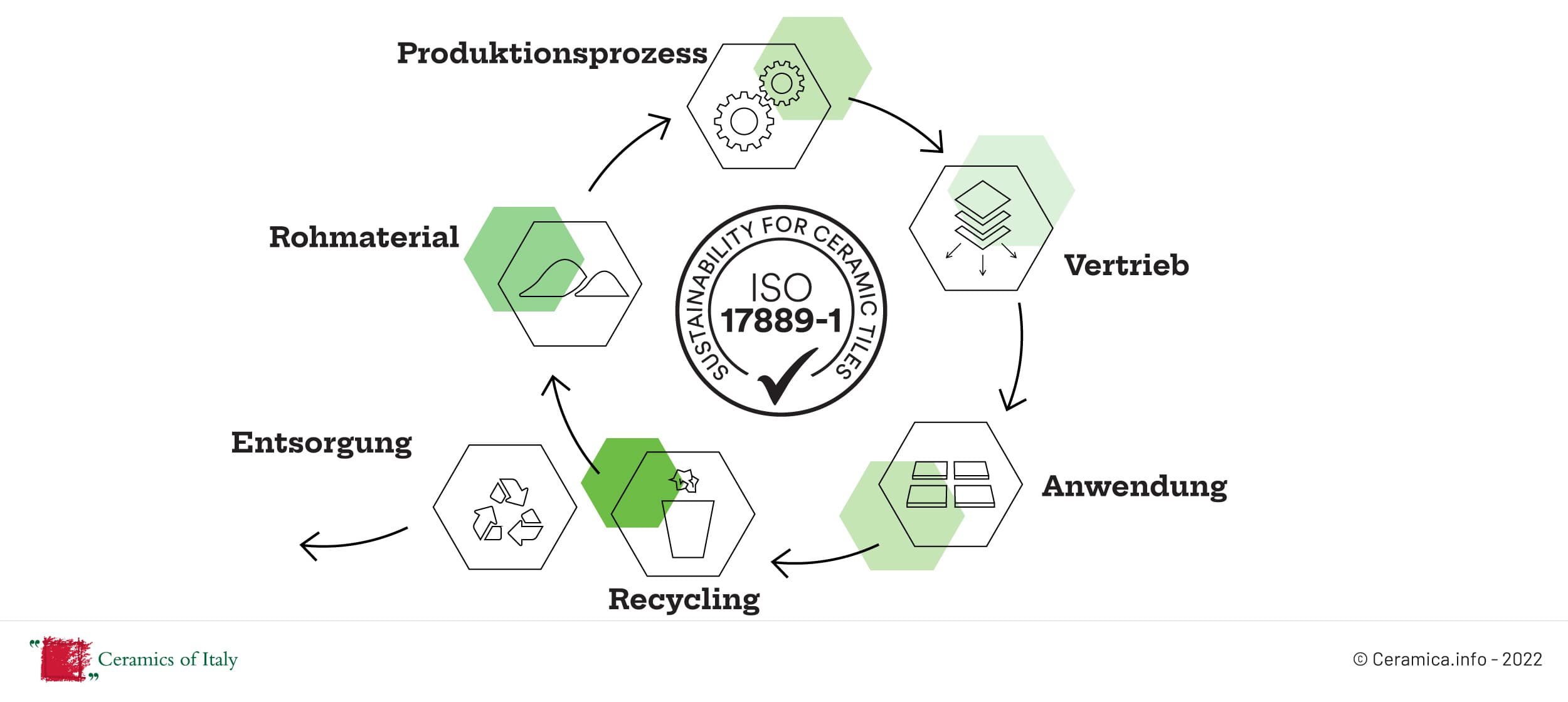 Die ISO-Norm 17889-1 “Ceramic tiling systems – Sustainability for ceramic tiles and installation materials-Part 1: Specifications and vocabulary for ceramic tiles” definiert erstmals eine Reihe von internationalen Parametern zur objektiven Messung der ökologischen, wirtschaftlichen und sozialen Auswirkungen von keramischen Fliesen während ihres gesamten Lebenszyklus.
