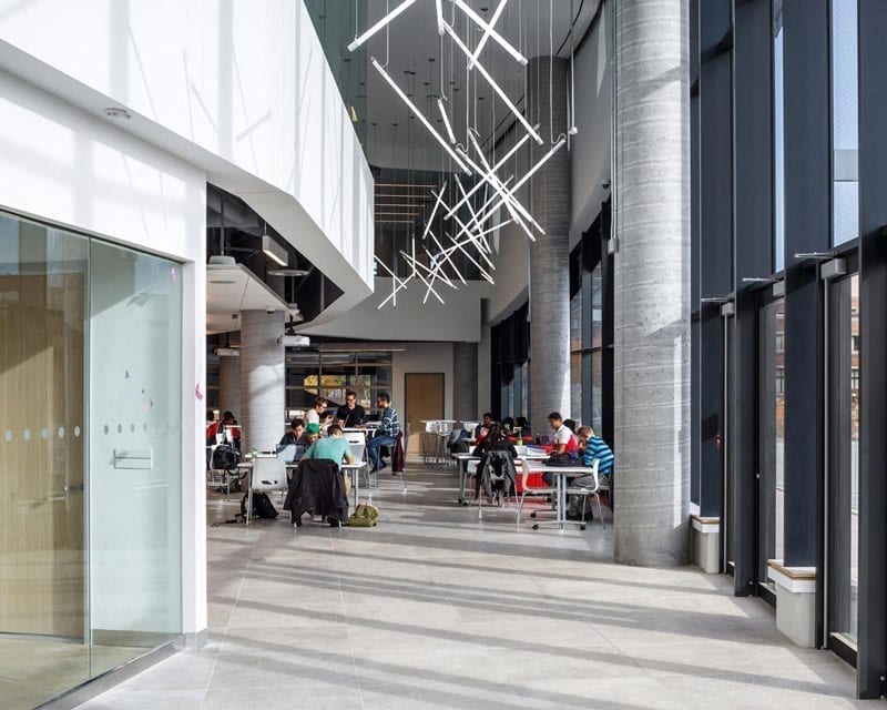 Leistungsmerkmale und Sicherheit sind die wichtigsten Parameter bei der Wahl der Baustoffe für den Innenausbau dieser Gebäude. Diese Kriterien wenden wir bei allen unseren Projekten an, vor allem aber im Öffentlichen Bau. Einige der jüngsten Projekte sind The Digital Media Lab an der University of Waterloo (Stratford Campus), das Vaughan Civic Centre Public Resource Library und das Bergeron Centre for Engineering Excellence an der Universität York. Letzteres war dieses Jahr auch Gewinner des Wettbewerbs Ceramics of Italy Tile Competition.