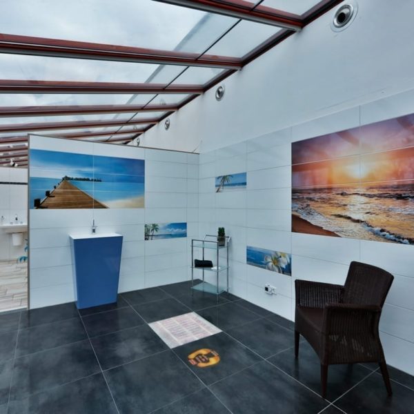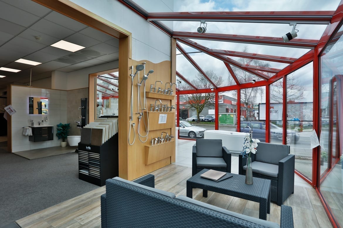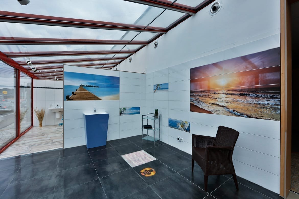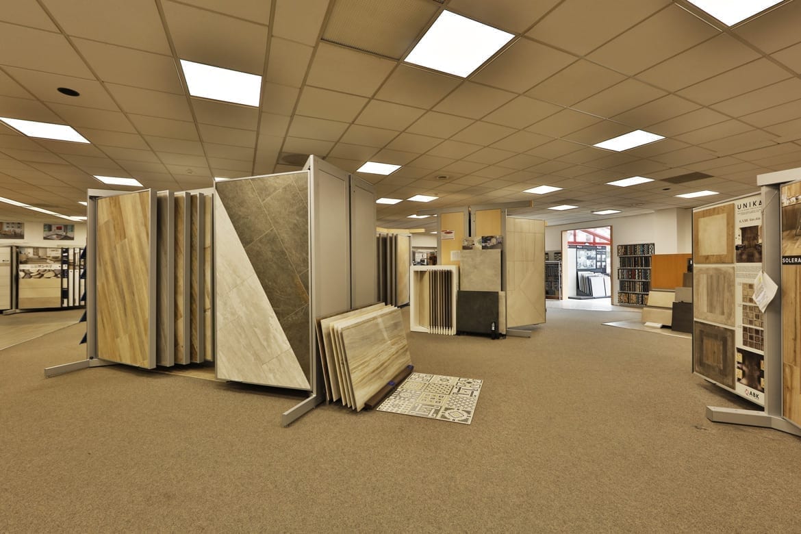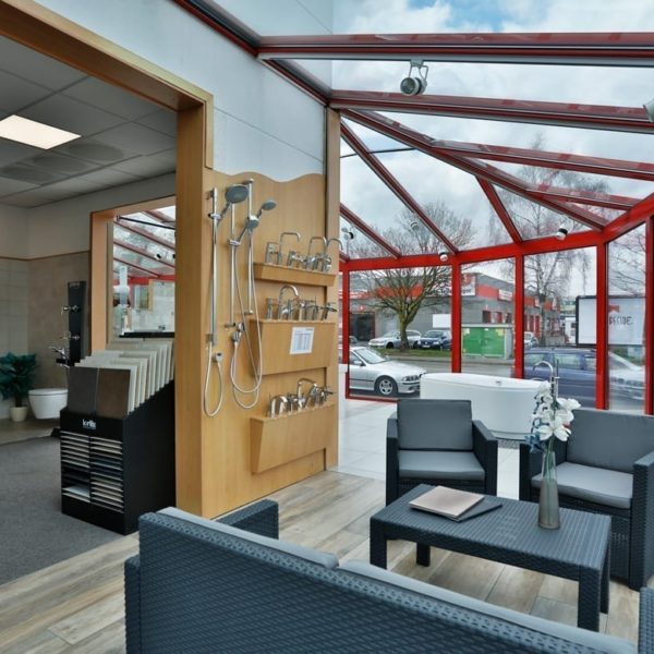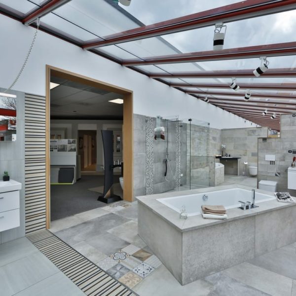 Beim Eintritt in den Fachhandel erwartet den Kunden ein reichhaltiges Angebot mit Wand- und Bodenfliesen, Naturstein, Sanitärkeramik und Armaturen, Komplettbad-Pakete, Sauna und Dampfbädern sowie Außenbeläge in allen Formaten.