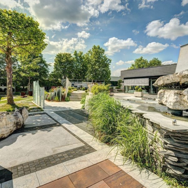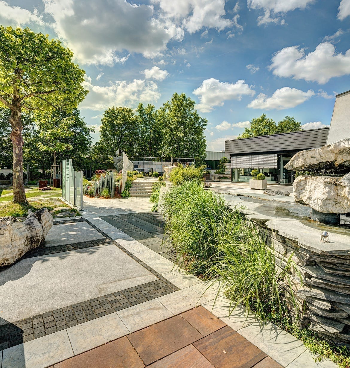 Offen und transparent, hell und übersichtlich: Die Außenbeläge setzen sich im Inneren fort und umgekehrt und folgen damit dem Trend, den Garten als erweitertes Wohnzimmer zu sehen. Die Gartenausstellung zeigt vielfältige Einsatzmöglichkeiten von Natursteinen, Holz im Garten und alle weiteren Gestaltungsmöglichkeiten im Bereich des Garten- und Landschaftsbaus.