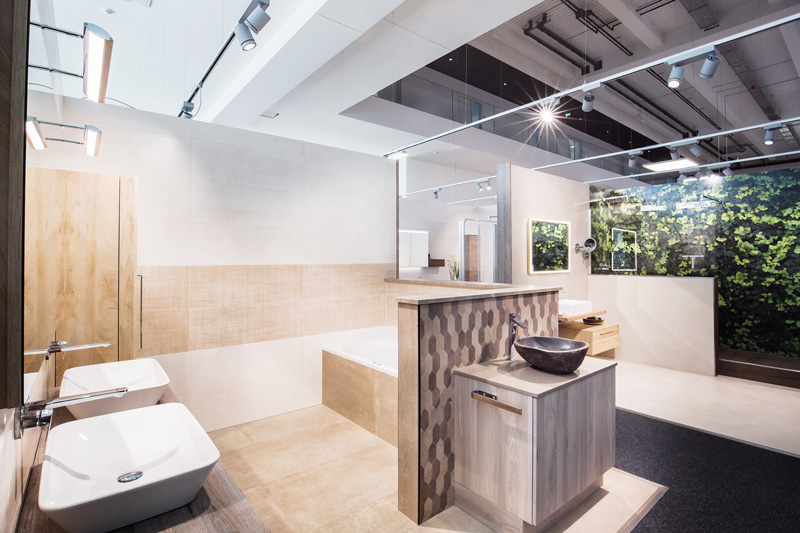Insgesamt verfügt das Unternehmen über knapp 10.000 Quadratmeter Ausstellungsfläche, von denen über 2.200 Quadratmeter auf das Fliesen- und Badsortiment entfallen.
