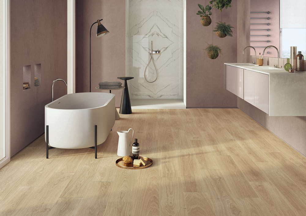Der Wandel ist nicht mehr aufzuhalten. Es ist nicht zu leugnen: Im letzten Jahr mussten wir alle unsere Art, die Räume zu erleben, mehr oder weniger ändern, und dieser Wandel wurde bei den Vorschlägen der Firmen für die kommenden Monate klarerweise berücksichtigt. Die Bedürfnisse bei der Renovierung oder Errichtung eines neuen Hauses sind heute anders als vor einem Jahr, und die Planer sind sich dessen bewusst. Der wichtigste Wunsch ist heute, in gesunden, also reinigungsfreundlichen, aber auch vielseitigen und bequemen Umgebungen zu wohnen und arbeiten. Wir haben den Bedarf, uns sicher zu fühlen und uns gleichzeitig entspannen zu können, sowohl in den Räumen unseres Privatlebens, als auch in den Umgebungen, in denen wir unsere Berufstätigkeiten ausüben. Wir dürfen nicht vergessen, dass es sich dabei für viele Menschen um ein und denselben Raum handelt. Die Verwendung eines praktischen, hygienischen und vielseitigen Materials wie Feinsteinzeug für Fußböden und Verkleidungen hat sich dieses Jahr eindeutig etabliert. Entdecken wir also gemeinsam, auf welche Dekorationsvorschläge die Planer und Firmen für das Jahr 2021 gesetzt haben. Nur um einen Vorgeschmack zu geben, bis sie mit eigenen Augen zu sehen sein werden, denn vom 27. September bis 1. Oktober 2021 werden sie auf der kommenden Cersaie in Bologna ausgestellt.