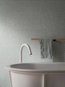 13. Die von Paola Navone für Decoratori Bassanesi entworfene Bonbon ist eine Kollektion, die aus Pastillen mit unregelmäßigen Formen und staubigen Farben besteht, mit denen absolut neue Mosaike geschaffen werden können. Die aus vollgemischtem Feinsteinzeug gefertigten Pastillen sind auf 30,5×30,5, cm großen Modulen mit 5 mm Stärke montiert.