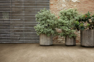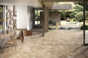 02. Das neue Projekt Aurum von Century (Fincibec) ist am Travertin-Marmor in seiner klassischsten Variante inspiriert. Eines seiner Merkmale ist der raffinierte Elfenbeinfarbton und der naturbelassene Schnitt „längs der Schichtung“, der an die traditionelle, im Einklang mit der lokalen Landschaft gestaltete Architektur des Mittelmeers erinnert. Aurum aus Feinsteinzeug kann auf zahlreiche Arten verlegt werden, auch im Außenbereich.